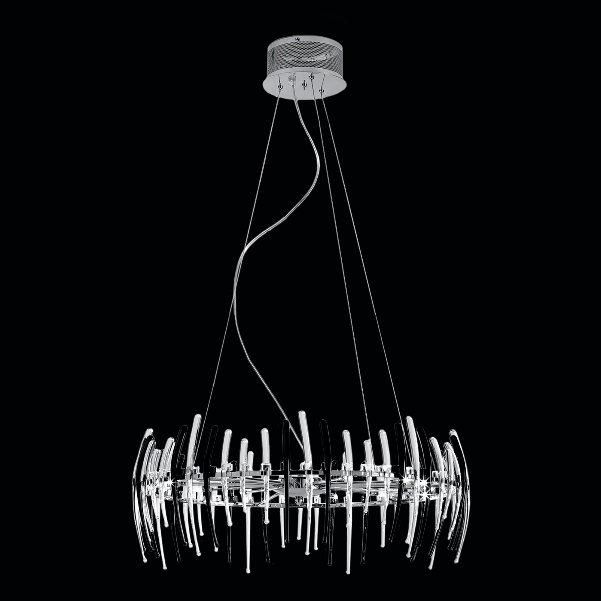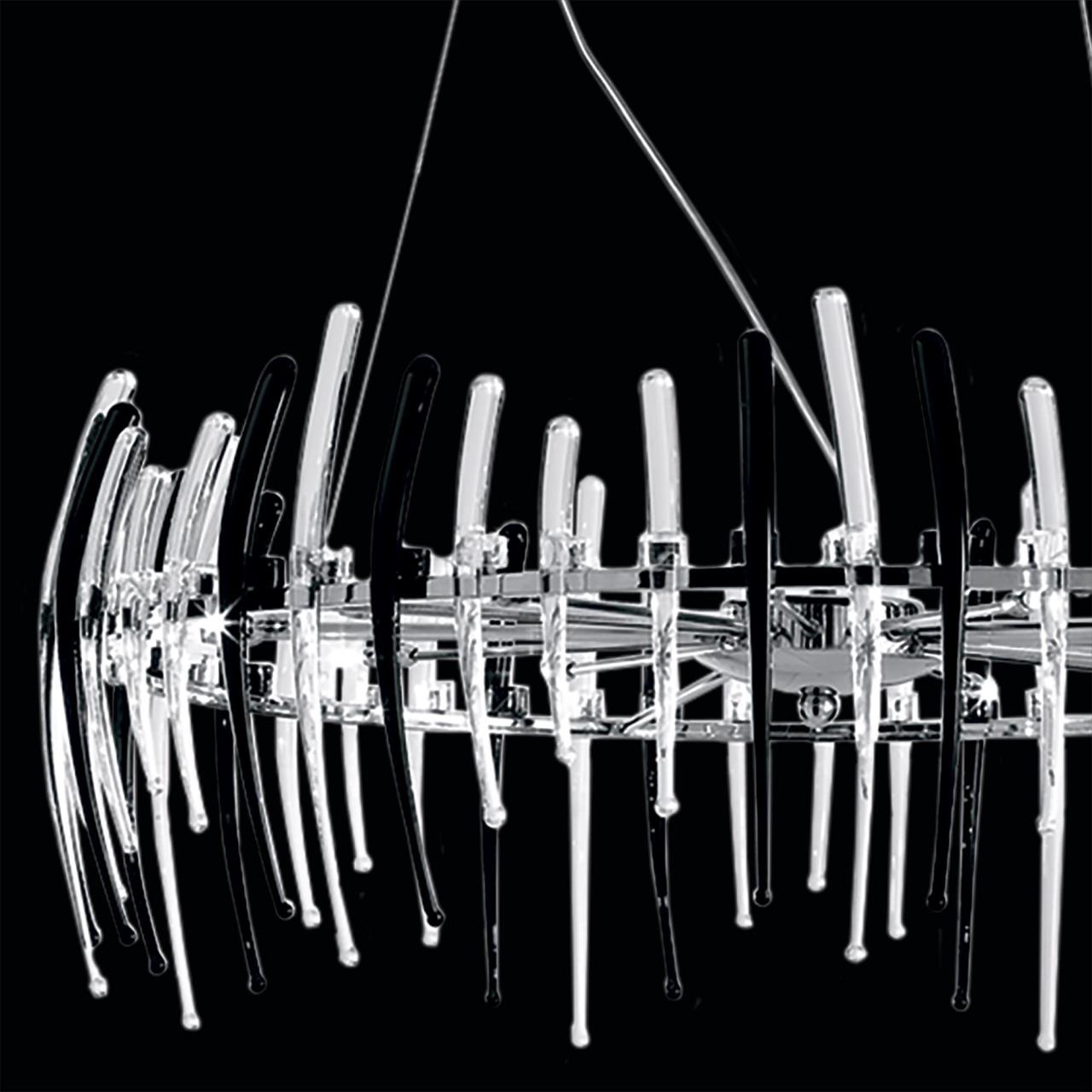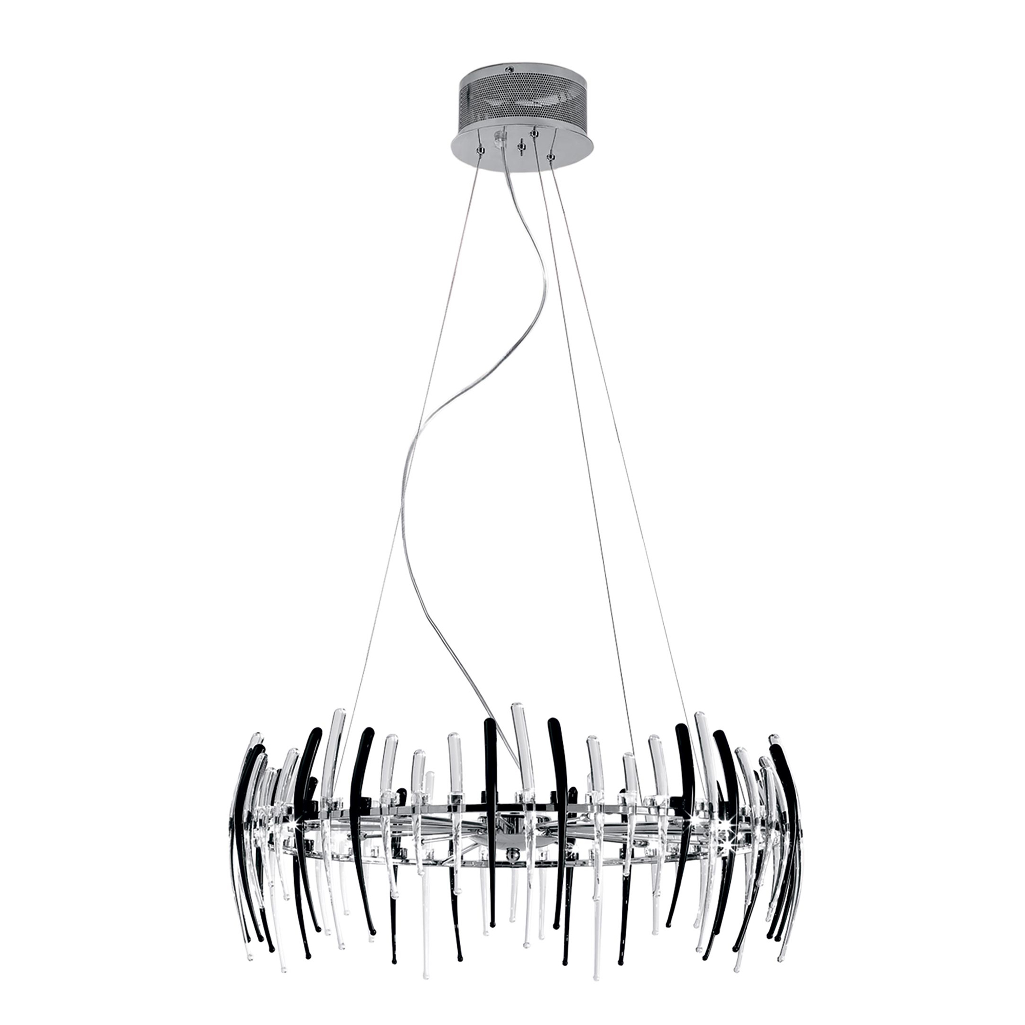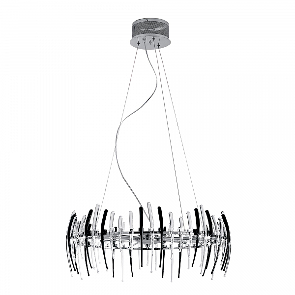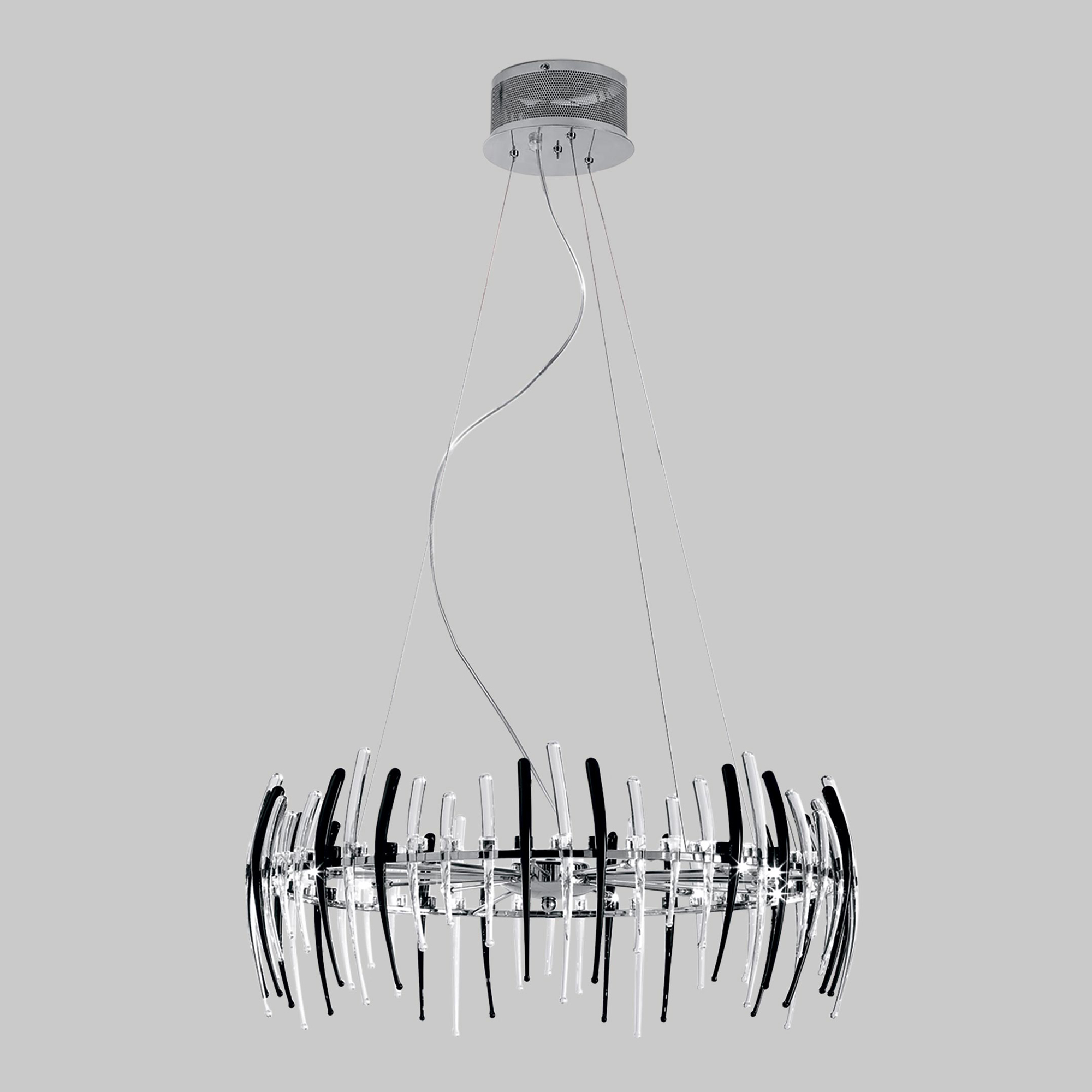 Материал и цвет арматуры: металл, хром. Плафоны: стекло прозрачное, черное. Светильник подключается к внутренней проводке. Управление от центрального выключателя. Галогеновые лампы в комплекте.