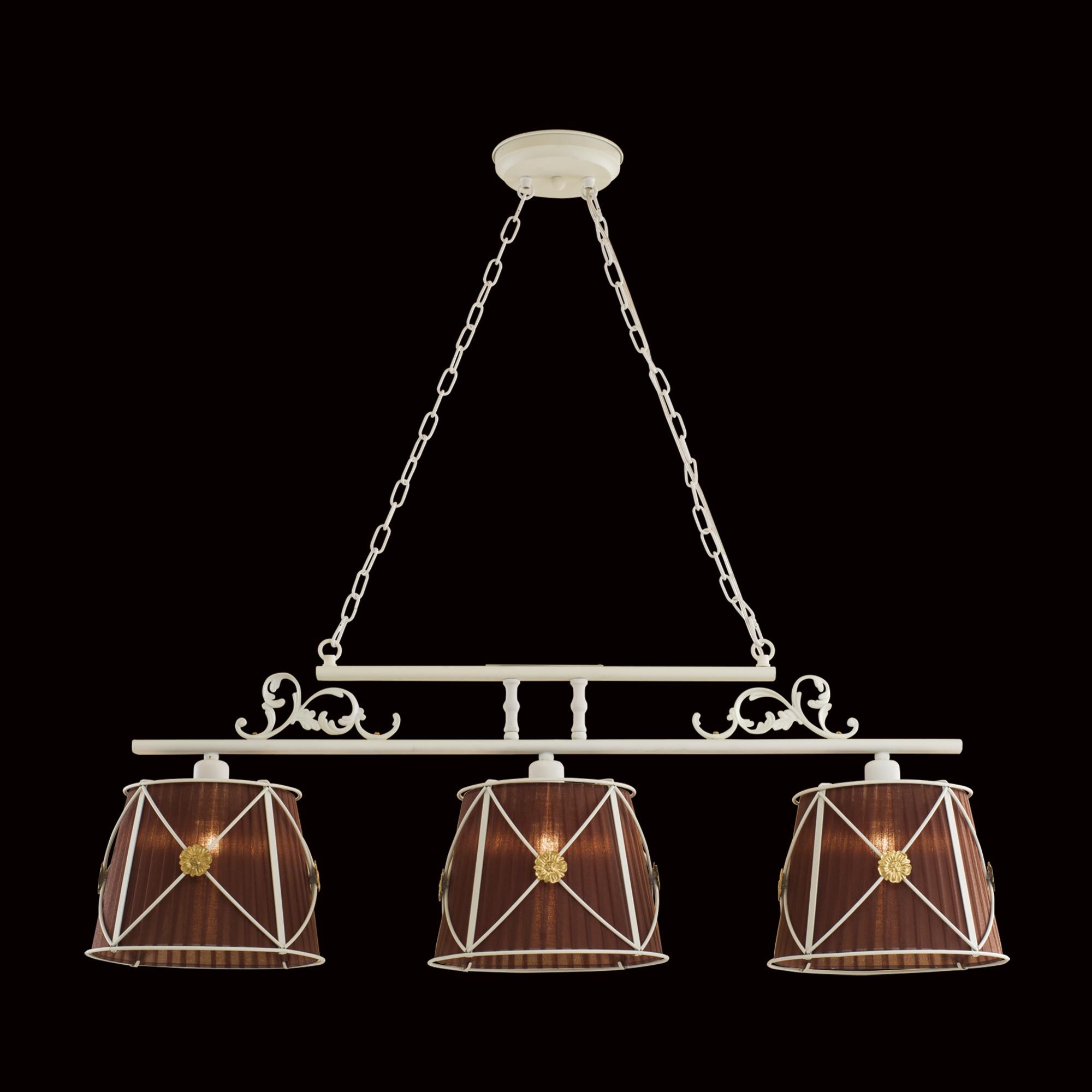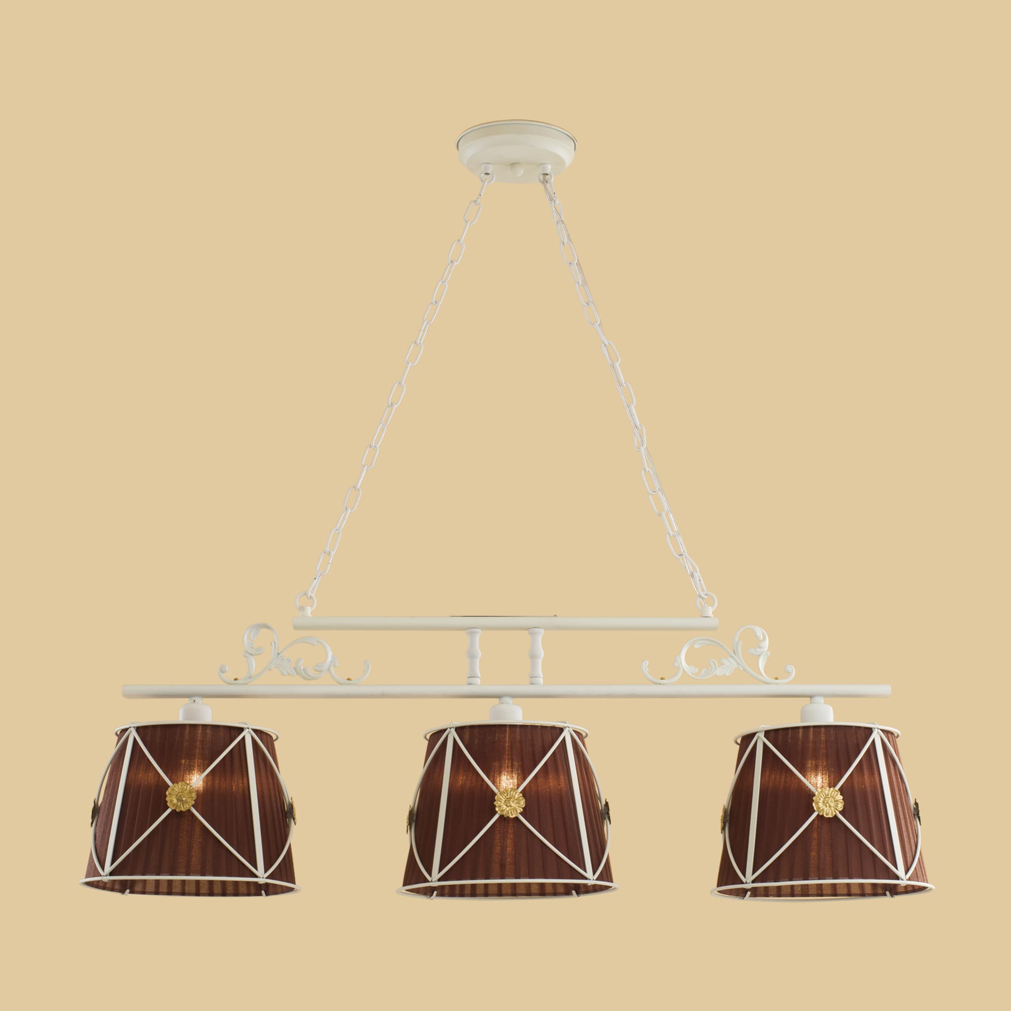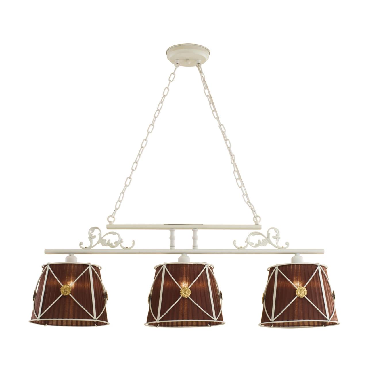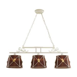 Допускается отличие страны-изготовителя, указанной в характеристиках. Линии производства могут находиться в нескольких государствах. Это не влияет на качество изготовления товара: все заводы данного бренда работают по общим стандартам, а готовые изделия проходят соответствующий контроль.Дания Коллекция Дрезден ЦветЦвет арматуры Белый Цвет Белый Материал арматуры Металл Цвет плафона Белый, коричневый, золото Материал плафона Металл, Текстиль РазмерыВысота (мм) 1100 Длина (мм) 1090 Высота минимальная (мм) 350 Ширина (мм) 280 Возможность регулировки высоты Есть ЭлектрикаКоличество ламп (шт) 3 Цоколь E27 Тип лампы Светодиодная, Накаливания, Энергосберегающая (КЛЛ) Лампочки в комплекте Нет в комплекте Возможность подключение диммера Есть Мощность лампы (Вт) 60 Общая мощность (Вт) 180 Напряжение (В) 220 Площадь освещения 9 Дополнительная информацияСпособ крепления Планка Степень защиты (IP) IP20 Тип подвеса На цепи -