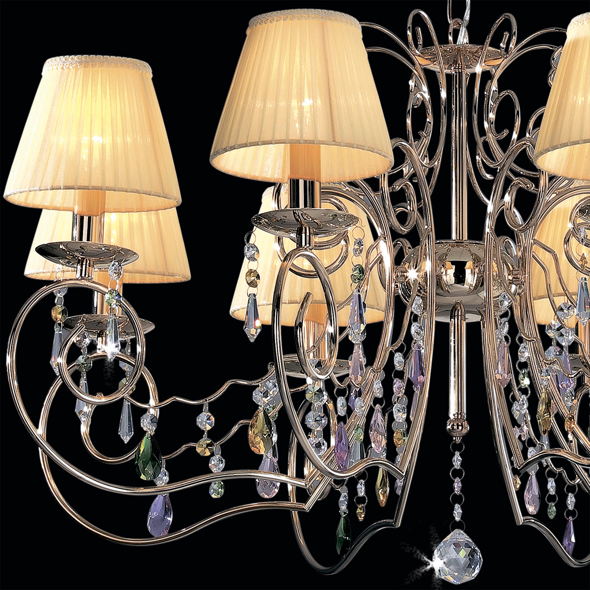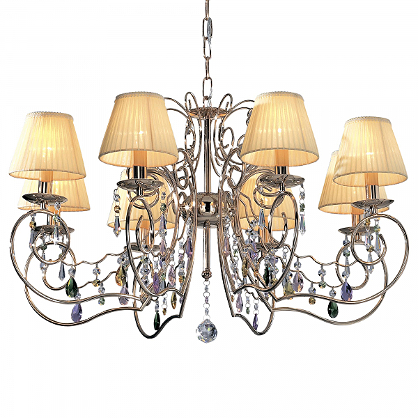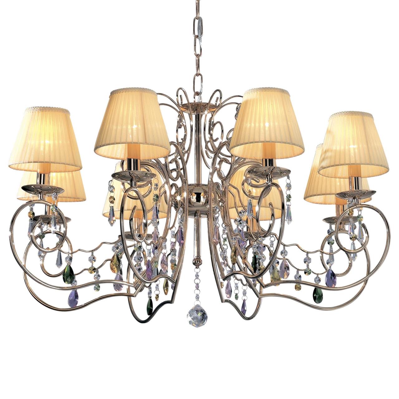 Материал и цвет арматуры: металл, Золото. Плафоны: ткань. Подвески: разноцветные. Светильник подключается к внутренней проводке. Управление от центрального выключателя. Лампы накаливания в комплект не входят.