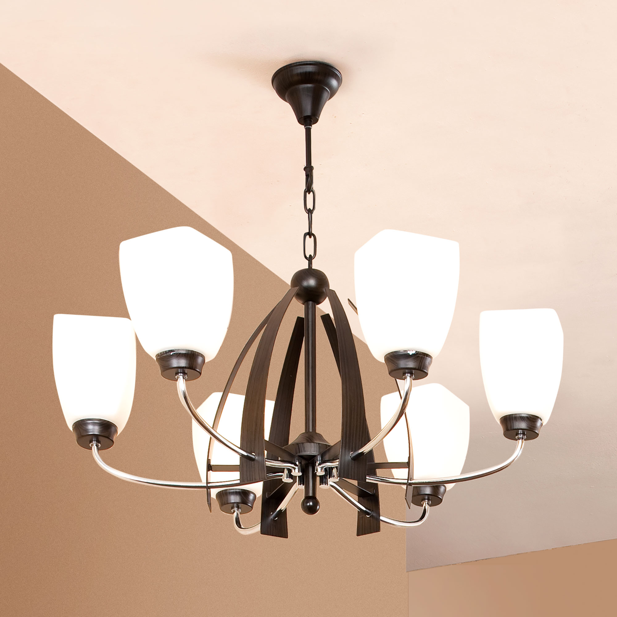 Допускается отличие страны-изготовителя, указанной в характеристиках. Линии производства могут находиться в нескольких государствах. Это не влияет на качество изготовления товара: все заводы данного бренда работают по общим стандартам, а готовые изделия проходят соответствующий контроль.Дания Коллекция Марго ЦветЦвет арматуры Хром, Черный Цвет Черный Материал арматуры Металл, Дерево Цвет плафона Белый Материал плафона Стекло РазмерыВысота (мм) 1000 Длина (мм) 570 Диаметр (мм) 570 Высота минимальная (мм) 500 Ширина (мм) 570 Возможность регулировки высоты Есть ЭлектрикаКоличество ламп (шт) 6 Цоколь E27 Тип лампы Светодиодная, Накаливания, Энергосберегающая (КЛЛ) Лампочки в комплекте Нет в комплекте Возможность подключение диммера Есть Мощность лампы (Вт) 75 Общая мощность (Вт) 450 Напряжение (В) 220 Площадь освещения 21 Дополнительная информацияСпособ крепления Крюк Степень защиты (IP) IP20 Вес (Кг) 6.100 Тип подвеса На цепи -