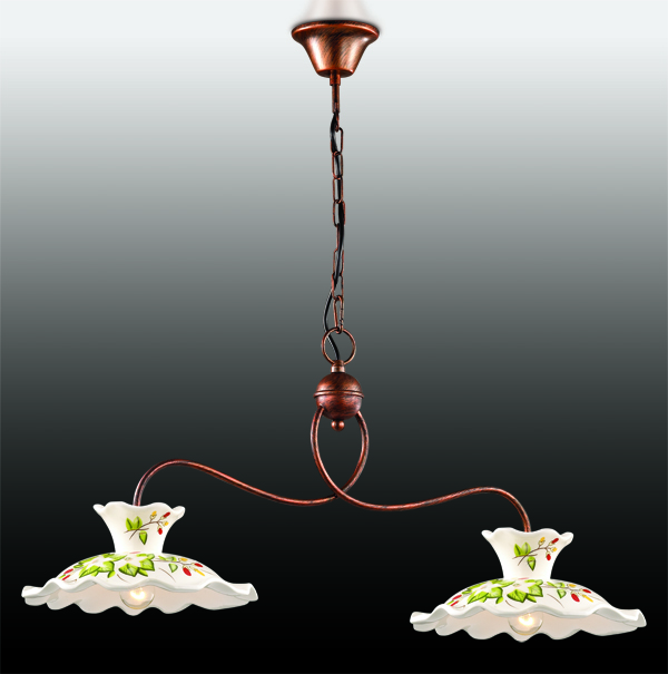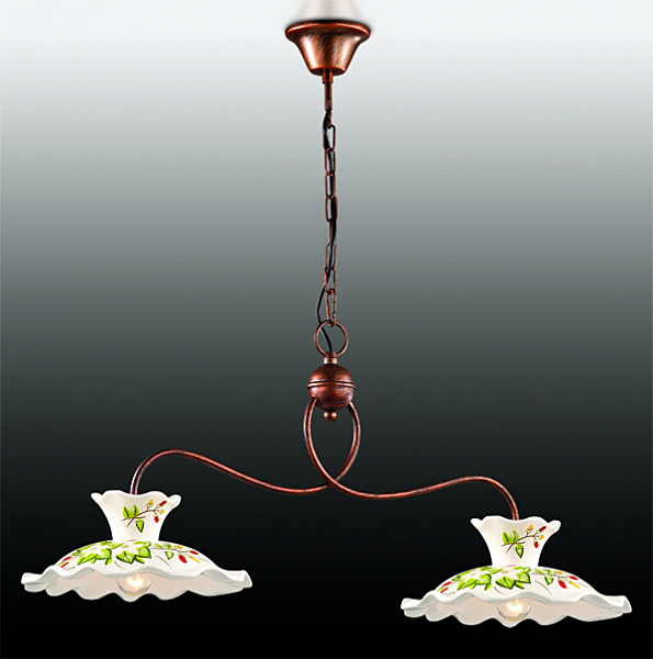 Допускается отличие страны-изготовителя, указанной в характеристиках. Линии производства могут находиться в нескольких государствах. Это не влияет на качество изготовления товара: все заводы данного бренда работают по общим стандартам, а готовые изделия проходят соответствующий контроль.Италия Коллекция Amanda ЦветЦвет арматуры Медь Цвет Медь Материал арматуры Металл Цвет плафона Белый, разноцветный Материал плафона Керамика РазмерыВысота (мм) 1000 Длина (мм) 300 Высота минимальная (мм) 550 Ширина (мм) 850 Возможность регулировки высоты Есть ЭлектрикаКоличество ламп (шт) 2 Цоколь E27 Тип лампы Светодиодная, Накаливания, Энергосберегающая (КЛЛ) Лампочки в комплекте Нет в комплекте Возможность подключение диммера Есть Мощность лампы (Вт) 40 Общая мощность (Вт) 80 Напряжение (В) 220 Дополнительная информацияСтепень защиты (IP) IP20 Тип подвеса На цепи -