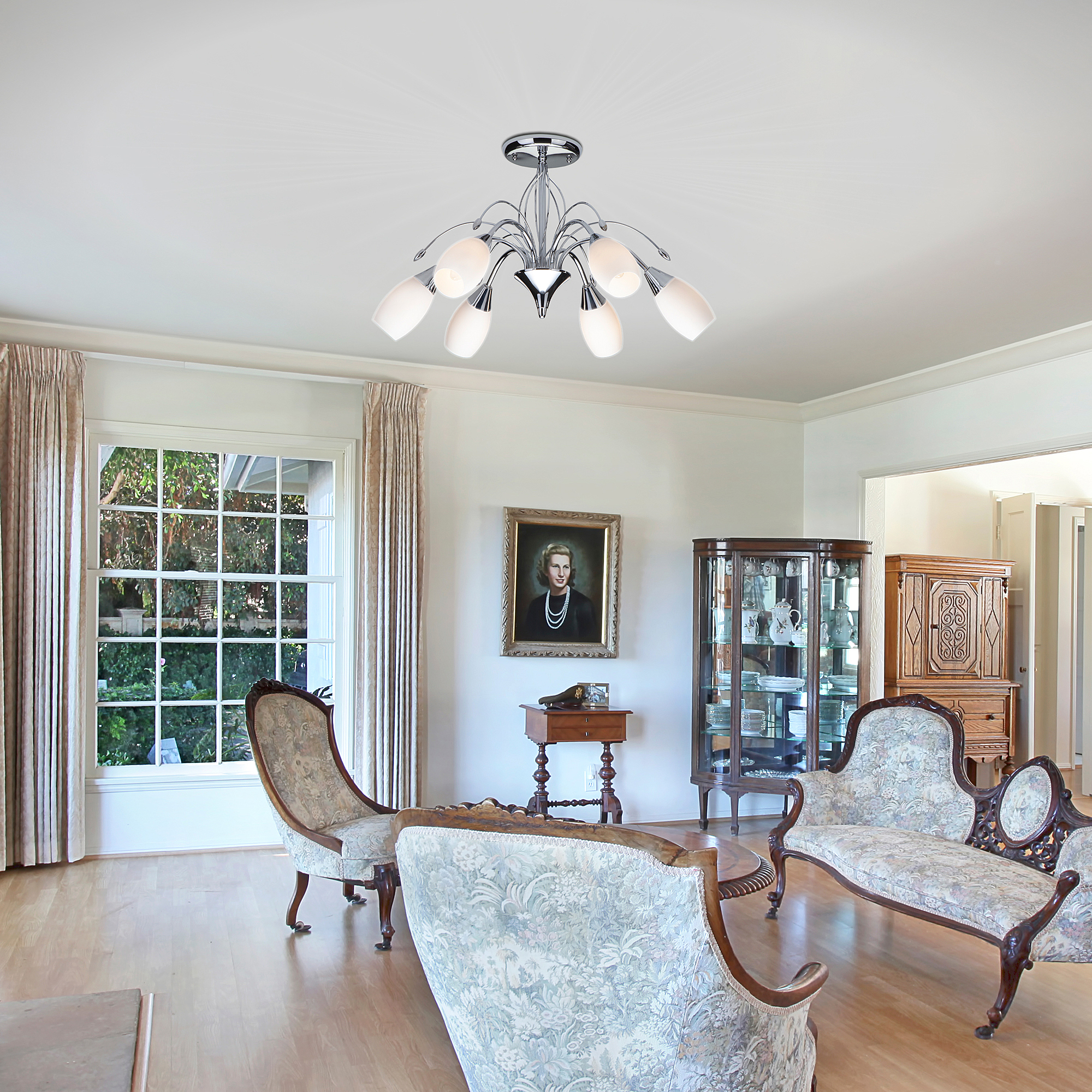 Допускается отличие страны-изготовителя, указанной в характеристиках. Линии производства могут находиться в нескольких государствах. Это не влияет на качество изготовления товара: все заводы данного бренда работают по общим стандартам, а готовые изделия проходят соответствующий контроль.Китай Коллекция Ginevra ЦветЦвет арматуры Хром Цвет Хром Материал арматуры Металл Цвет плафона Белый Материал плафона Стекло РазмерыВысота (мм) 370 Длина (мм) 600 Ширина (мм) 600 ЭлектрикаКоличество ламп (шт) 6 Цоколь E14 Лампочки в комплекте Нет в комплекте Мощность лампы (Вт) 40 Напряжение (В) 220 Дополнительная информацияВес (Кг) 2.60 кг -