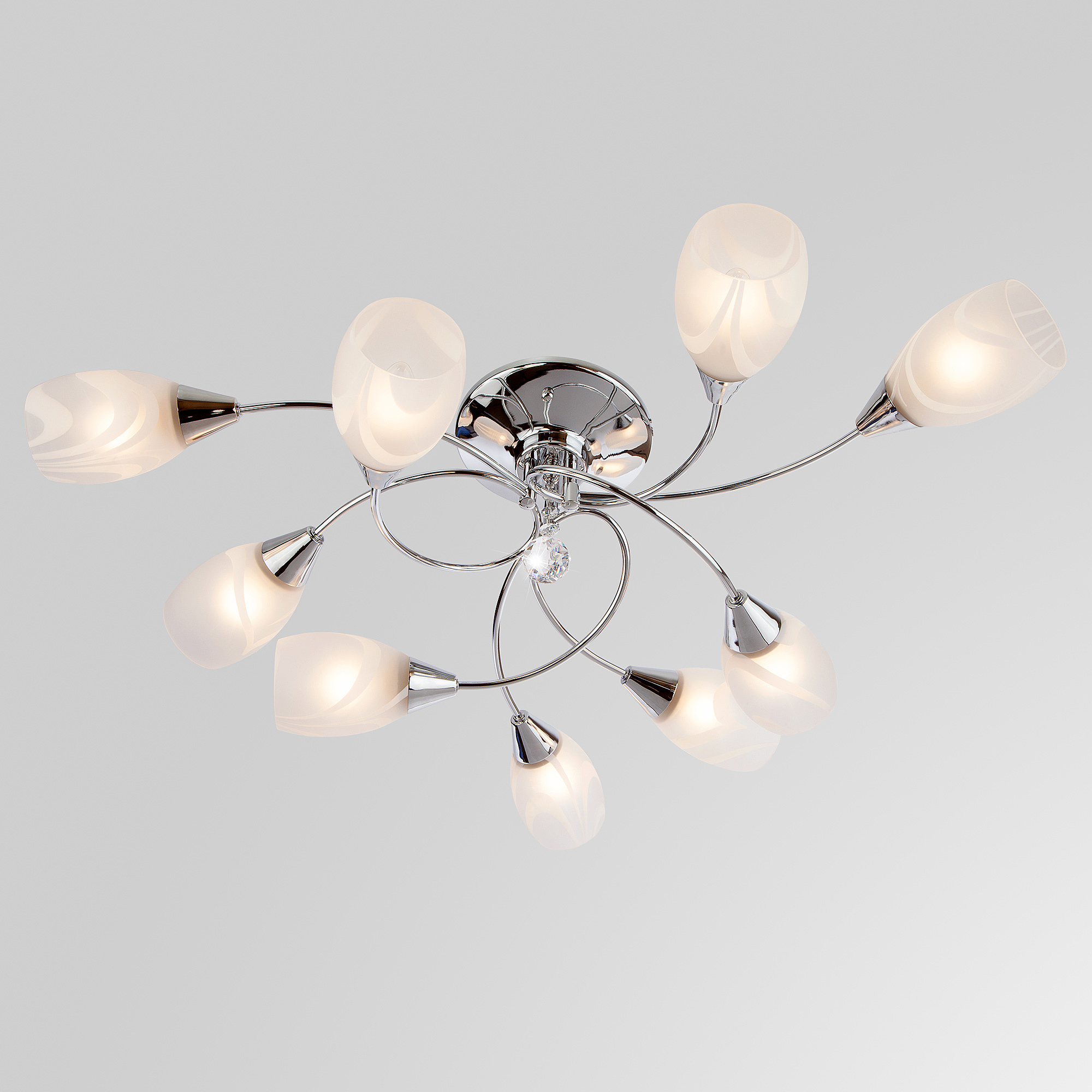 Допускается отличие страны-изготовителя, указанной в характеристиках. Линии производства могут находиться в нескольких государствах. Это не влияет на качество изготовления товара: все заводы данного бренда работают по общим стандартам, а готовые изделия проходят соответствующий контроль.Китай Коллекция Virginia ЦветЦвет арматуры Хром Цвет Хром Материал арматуры Металл Цвет плафона Белый Материал плафона Стекло РазмерыВысота (мм) 220 Длина (мм) 780 Ширина (мм) 780 ЭлектрикаКоличество ламп (шт) 9 Цоколь E27 Лампочки в комплекте Нет в комплекте Мощность лампы (Вт) 60 Напряжение (В) 220 Дополнительная информацияВес (Кг) 3.40 кг -