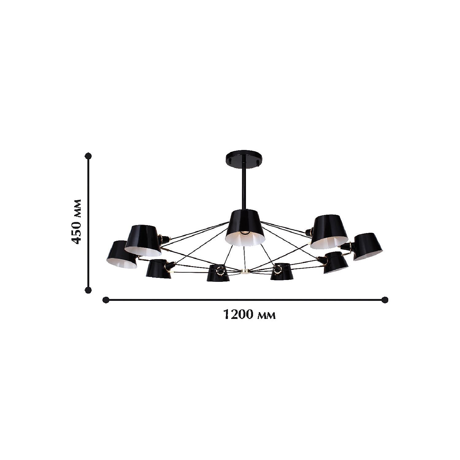 Допускается отличие страны-изготовителя, указанной в характеристиках. Линии производства могут находиться в нескольких государствах. Это не влияет на качество изготовления товара: все заводы данного бренда работают по общим стандартам, а готовые изделия проходят соответствующий контроль.Германия Коллекция Eimer ЦветЦвет арматуры Черный Цвет Черный Материал арматуры Металл Цвет плафона Черный Материал плафона Металл РазмерыВысота (мм) 450 Диаметр (мм) 1200 Ширина (мм) 1200 ЭлектрикаКоличество ламп (шт) 9 Цоколь E14 Тип лампы Светодиодная, Накаливания, Энергосберегающая (КЛЛ) Лампочки в комплекте Нет в комплекте Возможность подключение диммера Есть Мощность лампы (Вт) 40 Общая мощность (Вт) 360 Напряжение (В) 220 Дополнительная информацияСтепень защиты (IP) IP20 Вес (Кг) 4,1 -