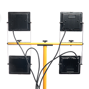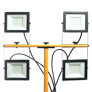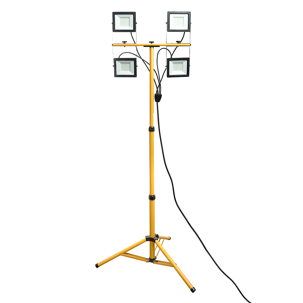 Прожектор светодиодный переносной на штативе, (ДО) FERON LL-506, 4*50W, 6400К (холодный белый), 230V/50Гц, 18000Lm, IP65, угол рассеивания 120градусов,*SMD2835, раб.t -40градусов - +40градусов, цвет черный-желтый, корпус алюминий литой под давлением + стекло, 670*482*1720мм (штатив+ голова) мм