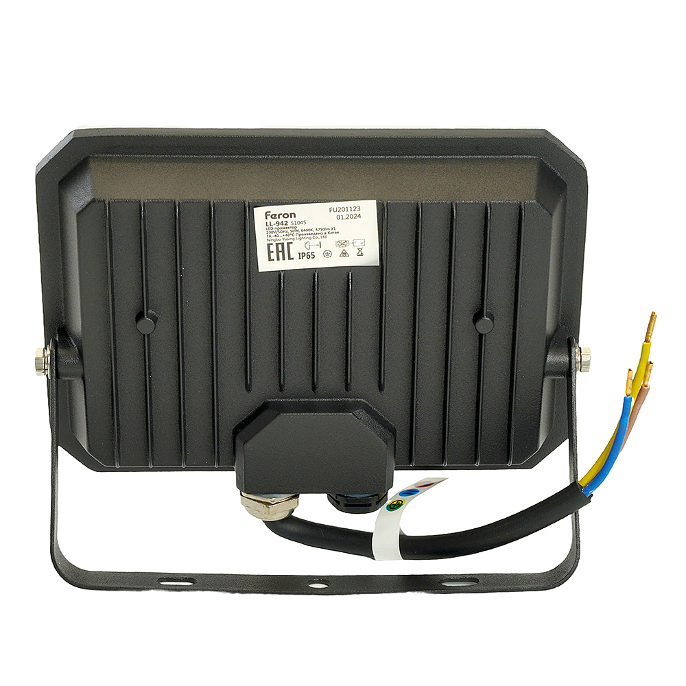 Прожектор светодиодный многоматричный с монтажным креплением на кронштейн, (ДО) FERON LL-942 , 50W, 6400К (холодный белый), 230V/50Гц, 4750Lm, IP65, угол рассеивания 120?,*SMD2835, раб.t -40?C - +40?C, цвет белый, корпус алюминий, поликарбонат, 140*100*26 мм