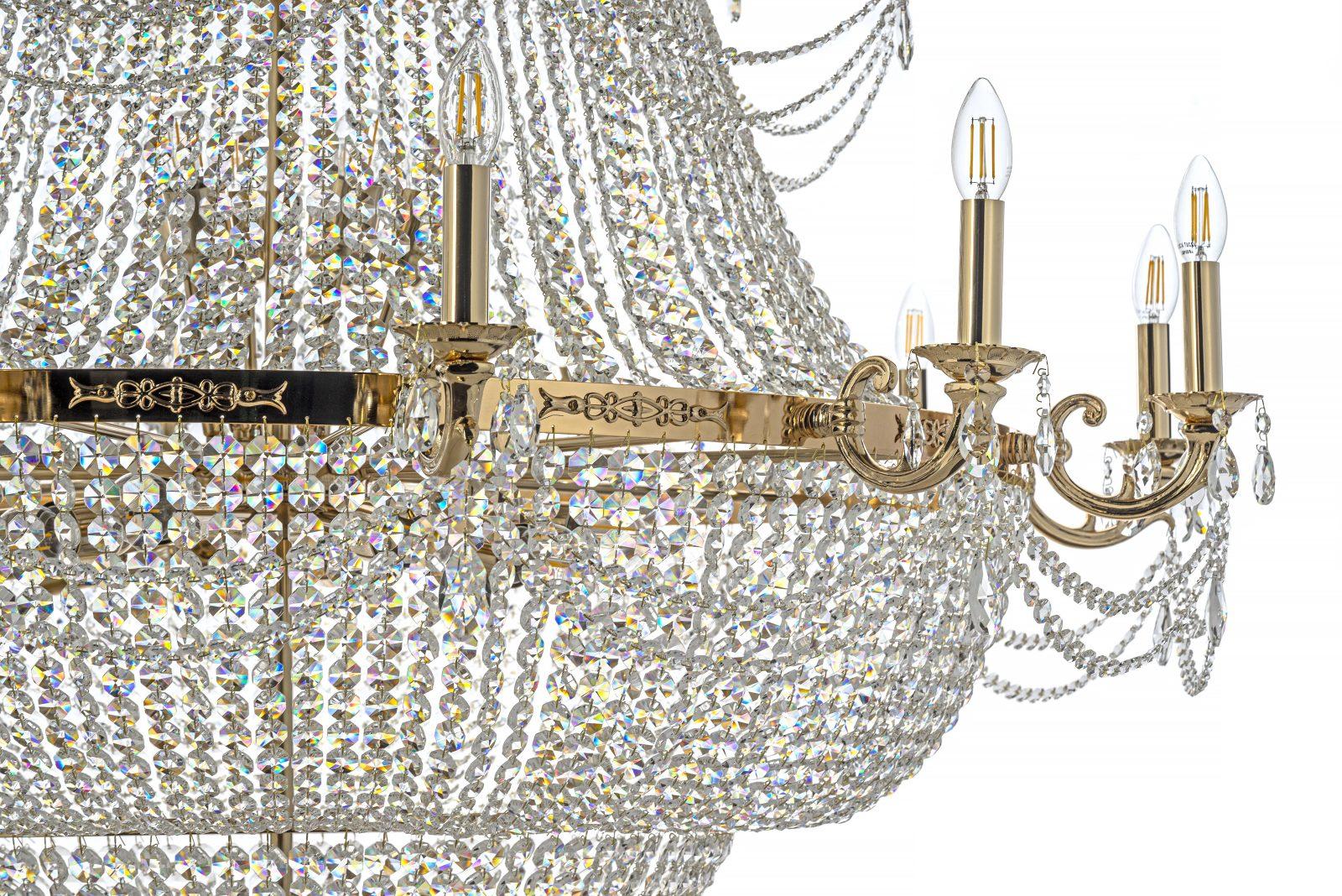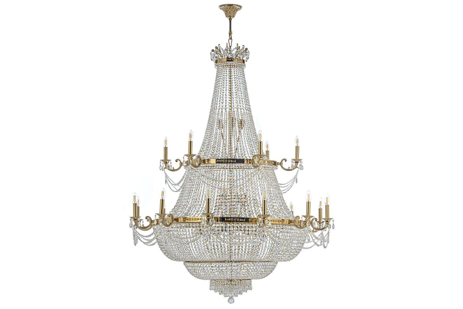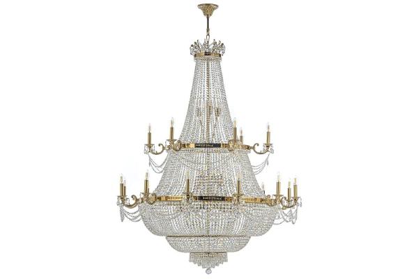 Допускается отличие страны-изготовителя, указанной в характеристиках. Линии производства могут находиться в нескольких государствах. Это не влияет на качество изготовления товара: все заводы данного бренда работают по общим стандартам, а готовые изделия проходят соответствующий контроль.Италия Коллекция Lodi Gold ЦветЦвет арматуры золотой Цвет Золото Материал арматуры Металл Цвет декора прозрачный Материал декора Хрусталь РазмерыВысота (мм) 1700 Диаметр (мм) 1320 Ширина (мм) 1320 ЭлектрикаКоличество ламп (шт) 21 Цоколь E27 Тип лампы Накаливания Мощность лампы (Вт) 60 Общая мощность (Вт) 1 260 Напряжение (В) 220 Площадь освещения 70 Дополнительная информацияСтепень защиты (IP) IP20 Место установки на потолок Вес (Кг) 50 Тип подвеса На цепи -