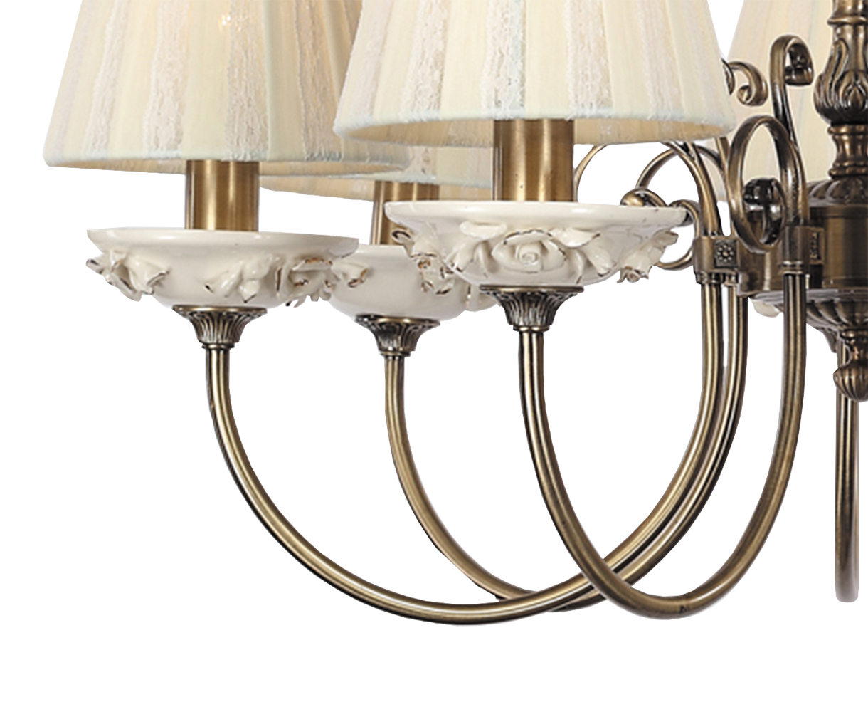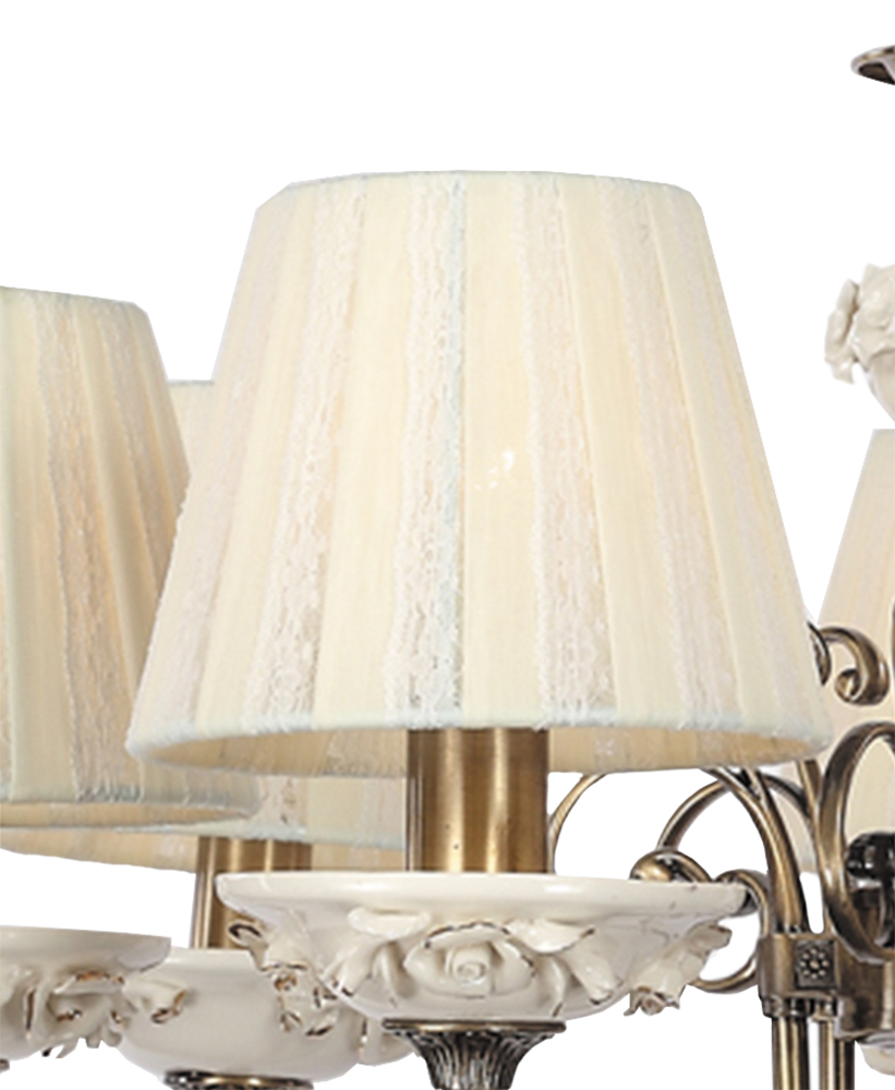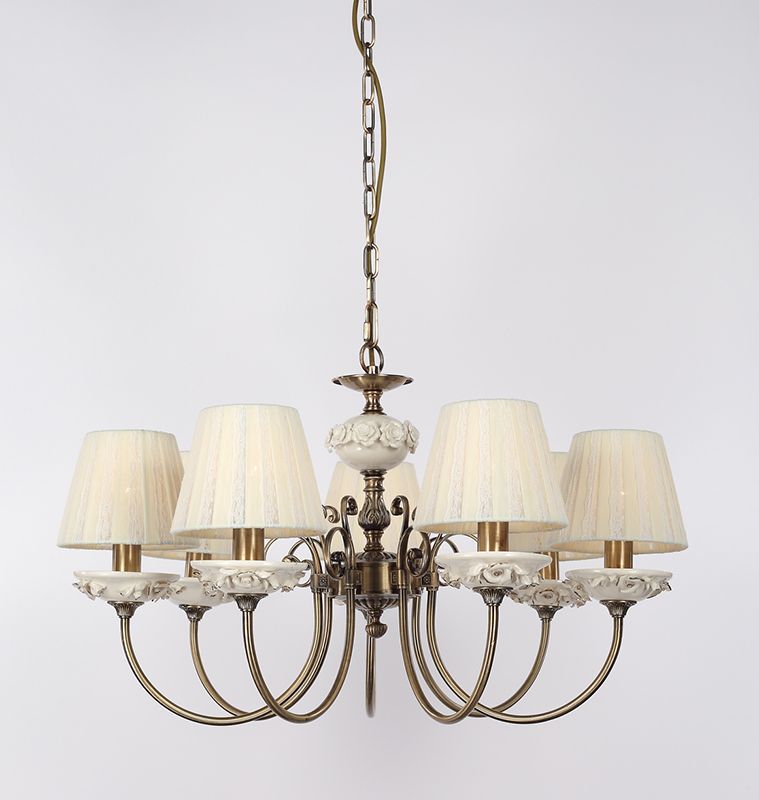 Допускается отличие страны-изготовителя, указанной в характеристиках. Линии производства могут находиться в нескольких государствах. Это не влияет на качество изготовления товара: все заводы данного бренда работают по общим стандартам, а готовые изделия проходят соответствующий контроль.Испания Коллекция Лорет ЦветЦвет арматуры Античная бронза Цвет Бронза Материал арматуры Металл Материал плафона Ткань РазмерыВысота (мм) 400 Диаметр (мм) 700 Ширина (мм) 700 ЭлектрикаКоличество ламп (шт) 7 Цоколь E14 Тип лампы Светодиодная, Накаливания, Энергосберегающая (КЛЛ) Лампочки в комплекте Нет в комплекте Мощность лампы (Вт) 60 Напряжение (В) 220 Дополнительная информацияСтепень защиты (IP) IP20 Вес (Кг) 6 Тип подвеса На цепи -