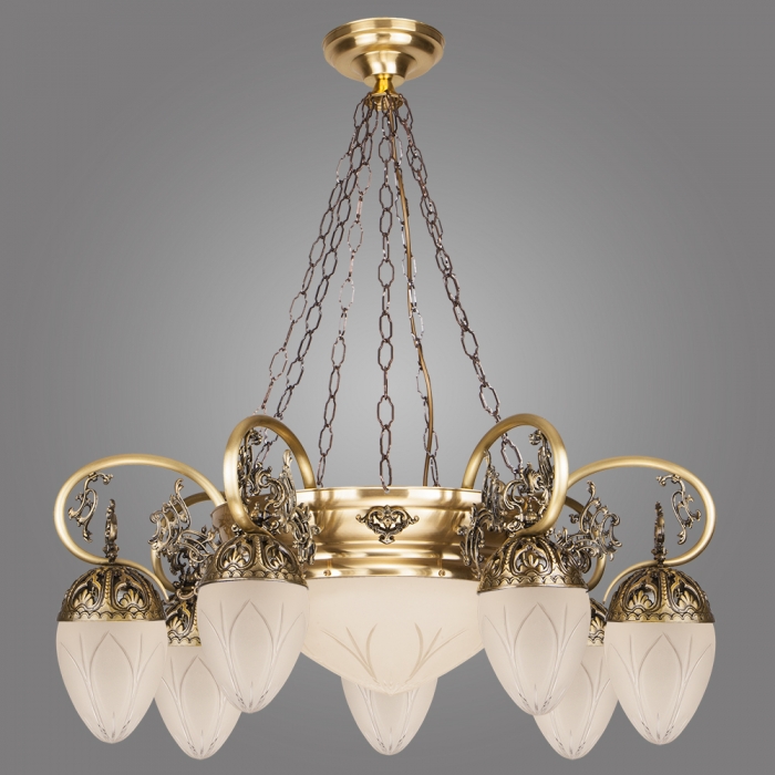 Допускается отличие страны-изготовителя, указанной в характеристиках. Линии производства могут находиться в нескольких государствах. Это не влияет на качество изготовления товара: все заводы данного бренда работают по общим стандартам, а готовые изделия проходят соответствующий контроль.Польша Коллекция Loretto ЦветЦвет арматуры Бронза Цвет Бронза Материал арматуры Латунь Цвет плафона Белый Материал плафона Стекло РазмерыВысота (мм) 920 Диаметр (мм) 780 ЭлектрикаКоличество ламп (шт) 8 Цоколь E27 Мощность лампы (Вт) 60W Напряжение (В) 220 Дополнительная информацияВес (Кг) 12.50 Тип подвеса На цепи -