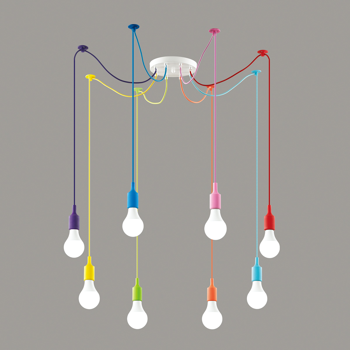 Достаточно одного взгляда на подвес Lotte, и настроение начинает подниматься само собой. Разноцветные патроны из мягкого силикона и комплектные крепления создадут в ващем помещении атмосферу постоянного праздника.