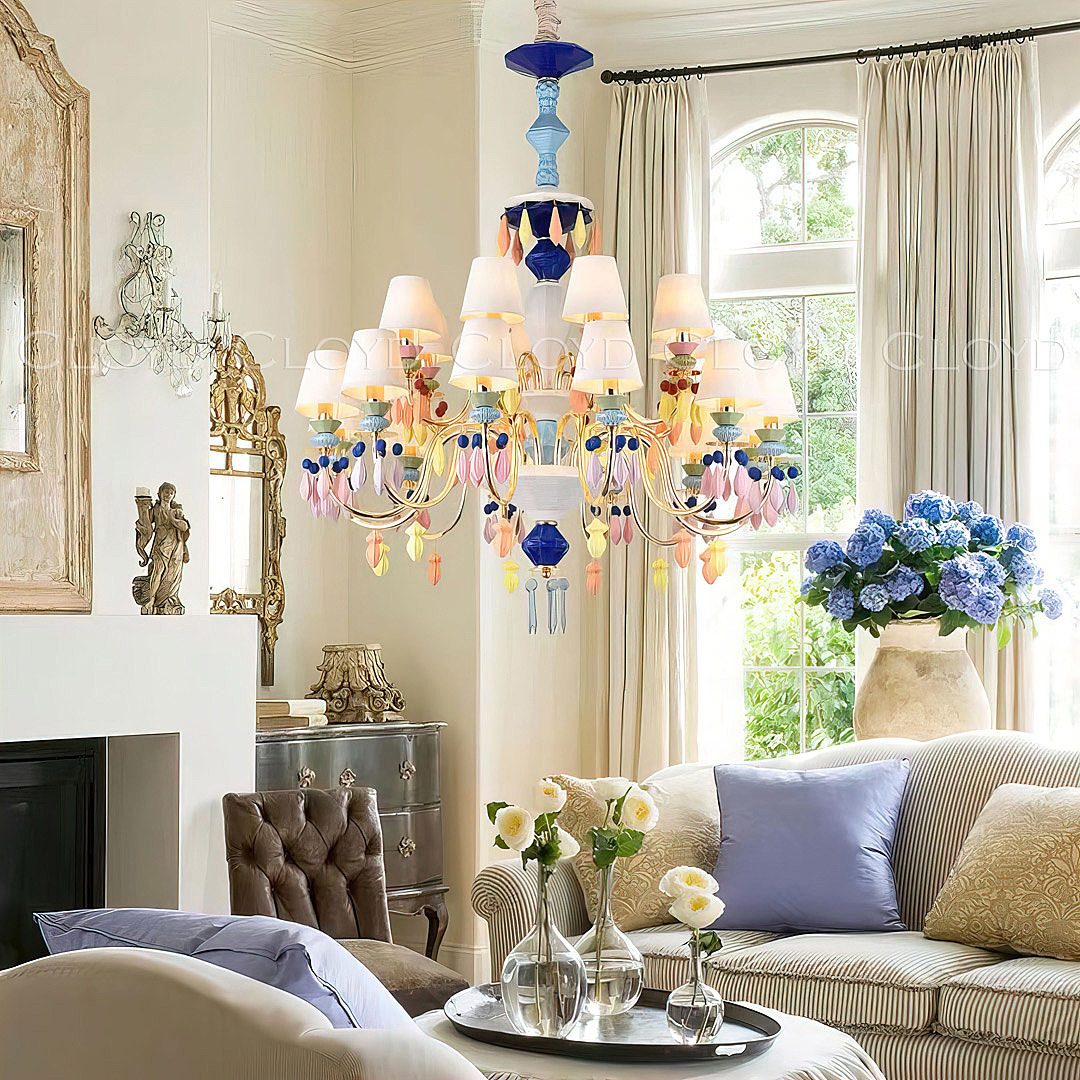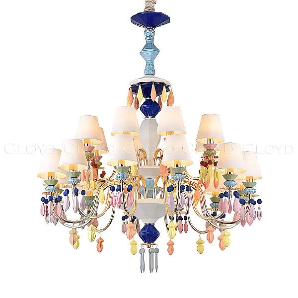 Допускается отличие страны-изготовителя, указанной в характеристиках. Линии производства могут находиться в нескольких государствах. Это не влияет на качество изготовления товара: все заводы данного бренда работают по общим стандартам, а готовые изделия проходят соответствующий контроль.Россия Коллекция Lottie ЦветЦвет арматуры золото блестящее Цвет Разноцветные Материал арматуры Металл, Керамика РазмерыВысота (мм) 1150 Диаметр (мм) 920 Высота минимальная (мм) 1000 ЭлектрикаКоличество ламп (шт) 20 Цоколь E14 Тип лампы Светодиодная Мощность лампы (Вт) 6 Дополнительная информацияТип подвеса На цепи -