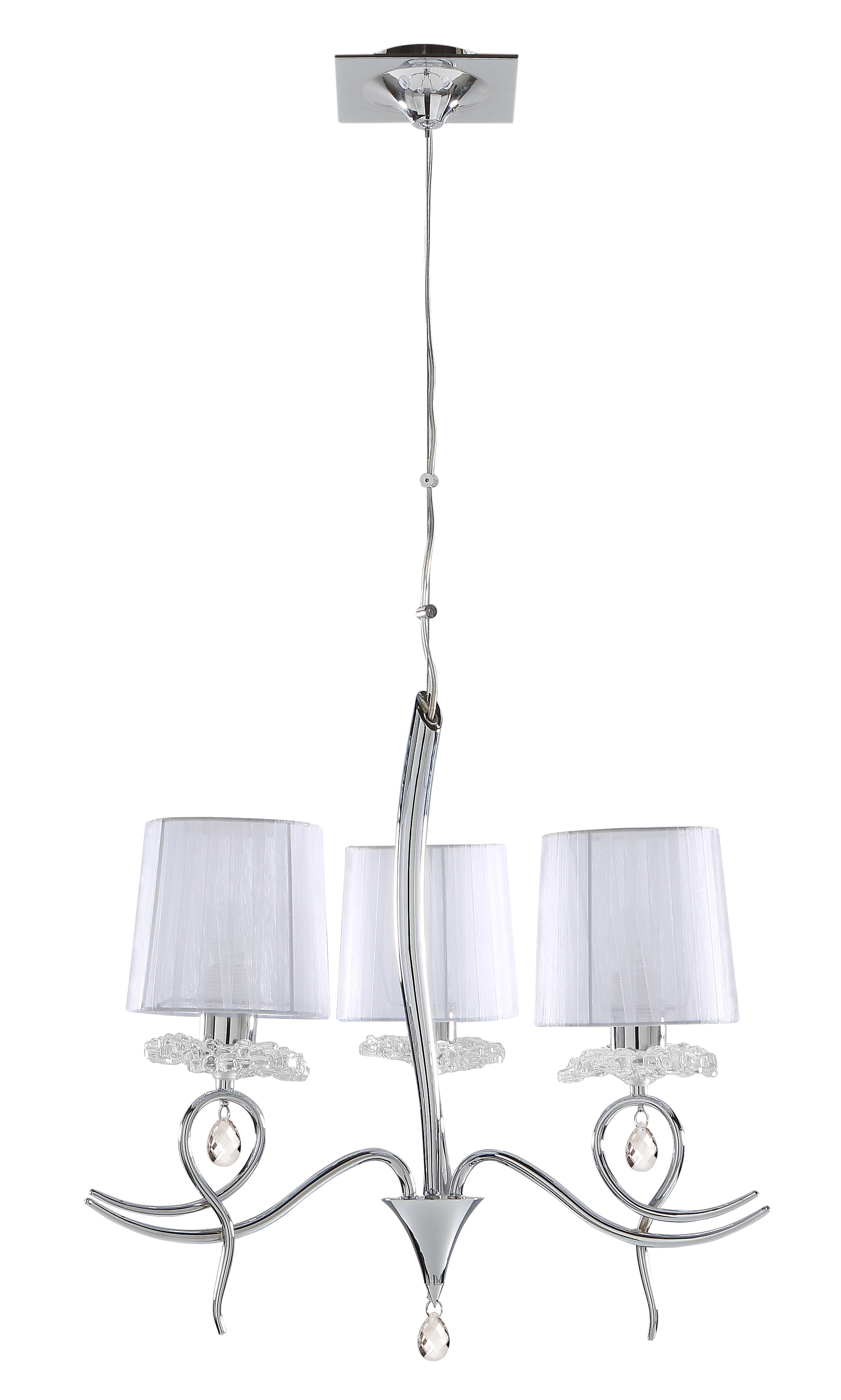 Допускается отличие страны-изготовителя, указанной в характеристиках. Линии производства могут находиться в нескольких государствах. Это не влияет на качество изготовления товара: все заводы данного бренда работают по общим стандартам, а готовые изделия проходят соответствующий контроль.Испания Коллекция Louise ЦветЦвет арматуры Хром Цвет Хром Материал арматуры Металл Цвет плафона Белый Материал плафона Ткань РазмерыВысота (мм) 1500 Диаметр (мм) 612 ЭлектрикаКоличество ламп (шт) 3 Цоколь E27 Мощность лампы (Вт) 13W Напряжение (В) 220 Дополнительная информацияТип подвеса На тросах -