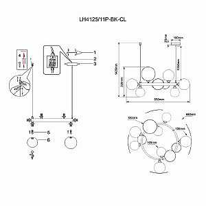 Подвесная люстра Lovrenc LH4125/11P-BK-CL