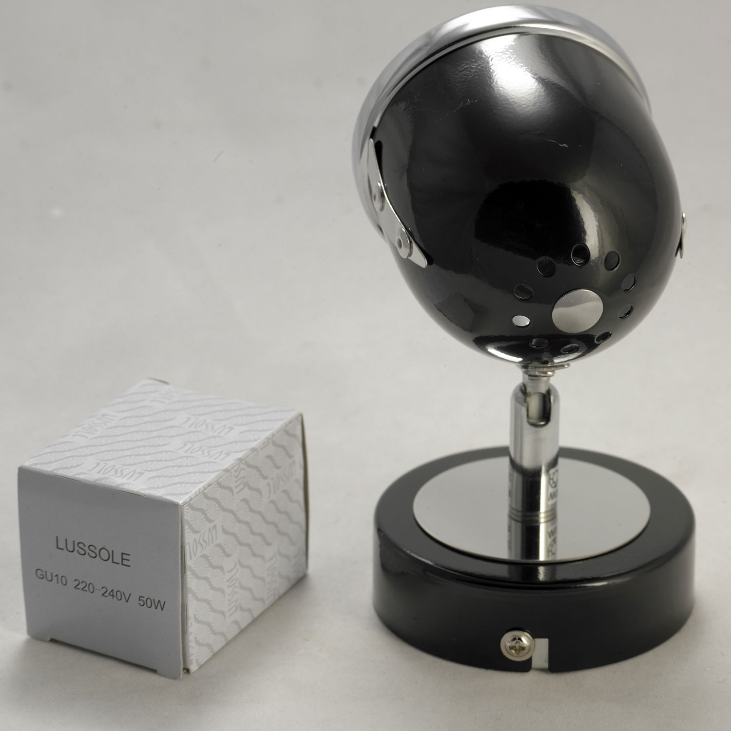 Допускается отличие страны-изготовителя, указанной в характеристиках. Линии производства могут находиться в нескольких государствах. Это не влияет на качество изготовления товара: все заводы данного бренда работают по общим стандартам, а готовые изделия проходят соответствующий контроль.Италия Коллекция Tivoli ЦветЦвет арматуры Хром, Черный Цвет Черный Материал арматуры Металл Цвет плафона хром, Черный Материал плафона Металл РазмерыВысота (мм) 190 Длина (мм) 160 Ширина (мм) 110 ЭлектрикаКоличество ламп (шт) 1 Цоколь GU10 Тип лампы Светодиодная, Галогеновая Лампочки в комплекте Лампы в комплекте Возможность подключение диммера Есть Мощность лампы (Вт) 50W Общая мощность (Вт) 50 Напряжение (В) 220 Дополнительная информацияСтепень защиты (IP) IP20 Техническая оссобеность Поворотный -