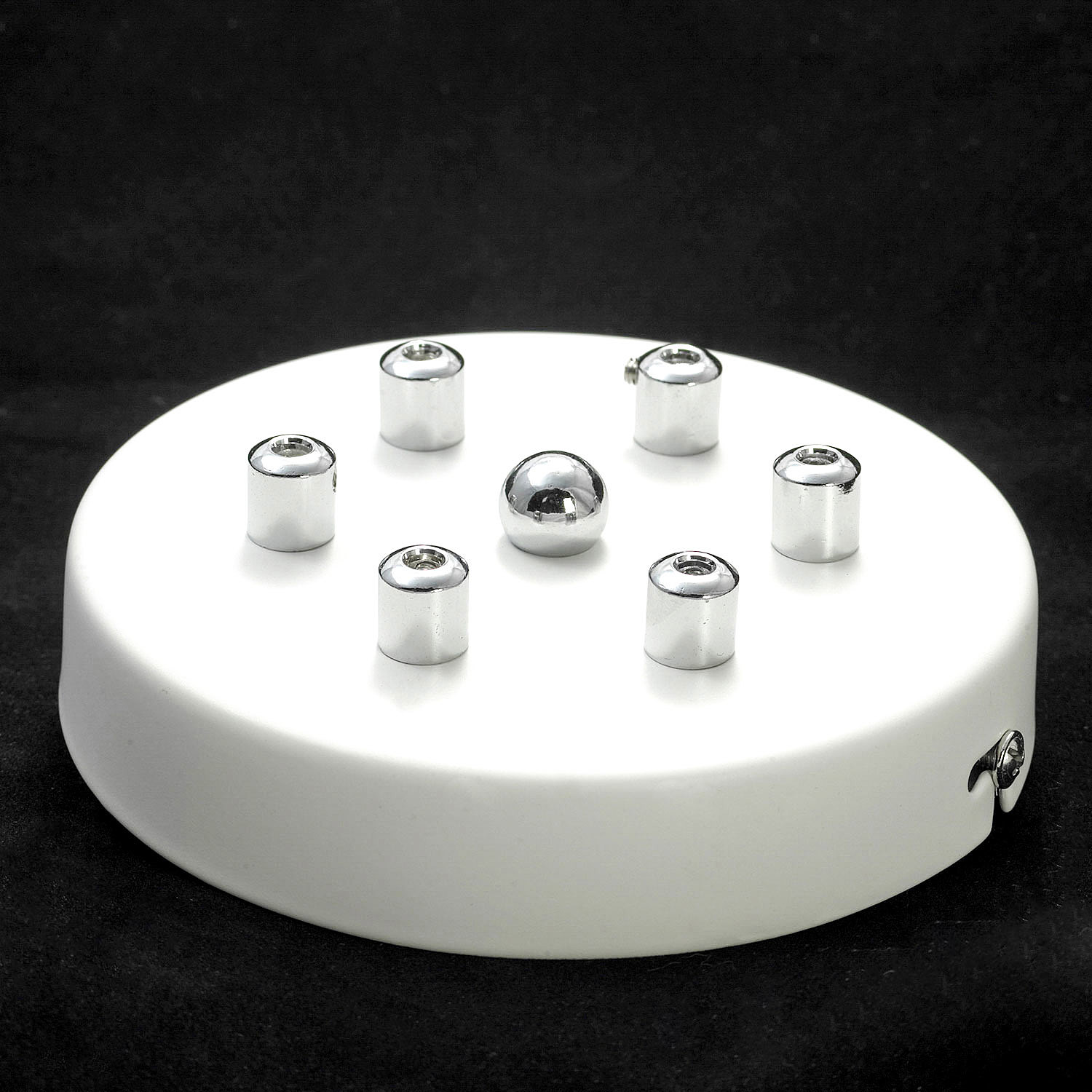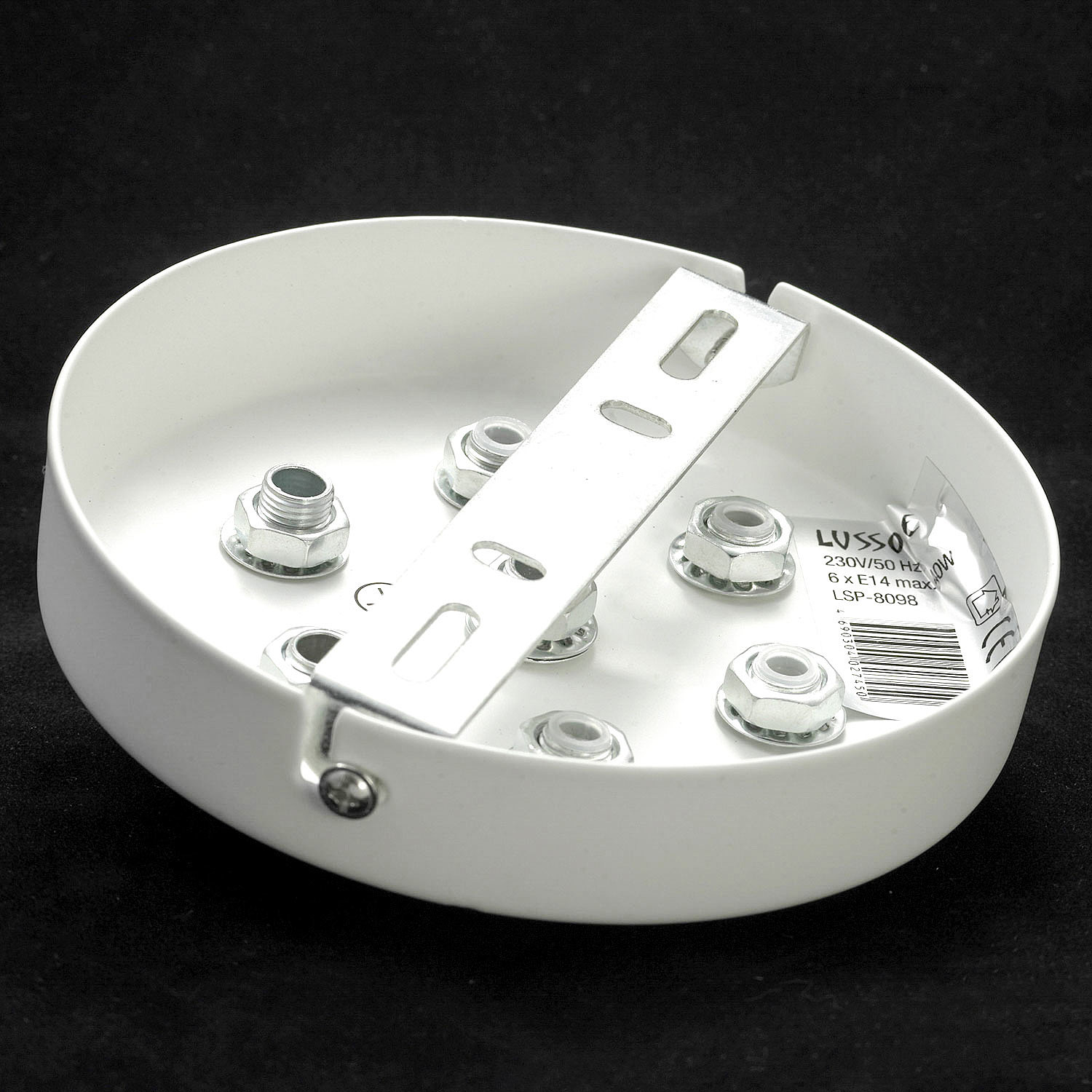 Допускается отличие страны-изготовителя, указанной в характеристиках. Линии производства могут находиться в нескольких государствах. Это не влияет на качество изготовления товара: все заводы данного бренда работают по общим стандартам, а готовые изделия проходят соответствующий контроль.Италия Коллекция Bisbee ЦветЦвет арматуры Белый Цвет Белый Материал арматуры Металл Цвет плафона Белый Материал плафона Металл РазмерыВысота (мм) 830 Диаметр (мм) 680 Ширина (мм) 680 ЭлектрикаКоличество ламп (шт) 6 Цоколь E14 Лампочки в комплекте Нет в комплекте Мощность лампы (Вт) 40 Напряжение (В) 220 Дополнительная информацияСпособ крепления Планка Степень защиты (IP) IP20 Тип подвеса На тросах -