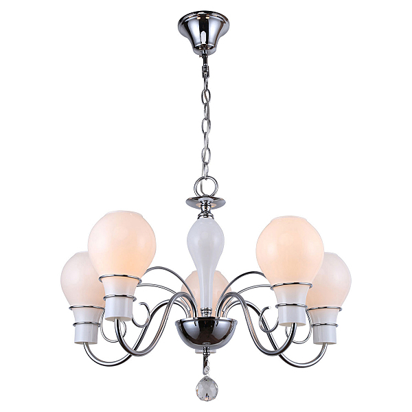Допускается отличие страны-изготовителя, указанной в характеристиках. Линии производства могут находиться в нескольких государствах. Это не влияет на качество изготовления товара: все заводы данного бренда работают по общим стандартам, а готовые изделия проходят соответствующий контроль.Италия Коллекция Gila ЦветЦвет арматуры Хром Цвет Хром Материал арматуры Металл Цвет плафона Белый Материал плафона Стекло РазмерыВысота (мм) 850 Диаметр (мм) 620 Ширина (мм) 620 ЭлектрикаКоличество ламп (шт) 5 Цоколь E14 Лампочки в комплекте Нет в комплекте Мощность лампы (Вт) 40 Напряжение (В) 220 Дополнительная информацияСпособ крепления Крюк Степень защиты (IP) IP20 Тип подвеса На цепи -