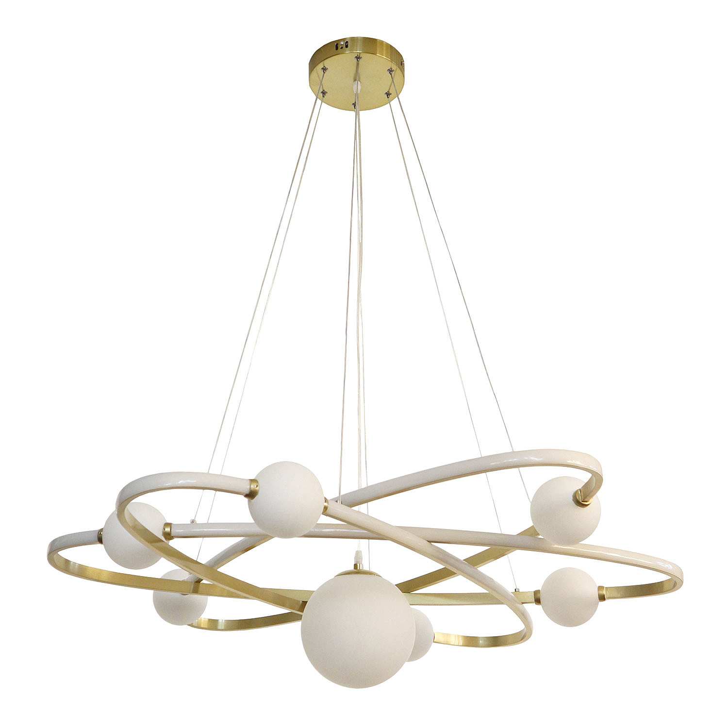 Допускается отличие страны-изготовителя, указанной в характеристиках. Линии производства могут находиться в нескольких государствах. Это не влияет на качество изготовления товара: все заводы данного бренда работают по общим стандартам, а готовые изделия проходят соответствующий контроль.Италия ЦветЦвет арматуры матовое золото Цвет Золото Материал арматуры Металл Цвет плафона Белый Материал плафона Акрил РазмерыВысота (мм) 1750 Высота минимальная (мм) 300 Ширина (мм) 1050 ЭлектрикаКоличество ламп (шт) 1 Цоколь LED Лампочки в комплекте Лампы в комплекте Мощность лампы (Вт) 96 Общая мощность (Вт) 96 Дополнительная информацияСпособ крепления Планка Степень защиты (IP) IP21 Тип подвеса На тросах -