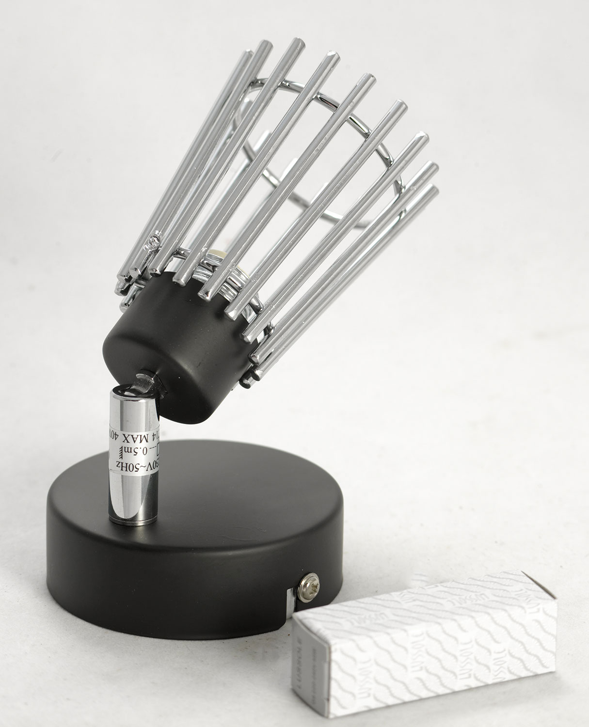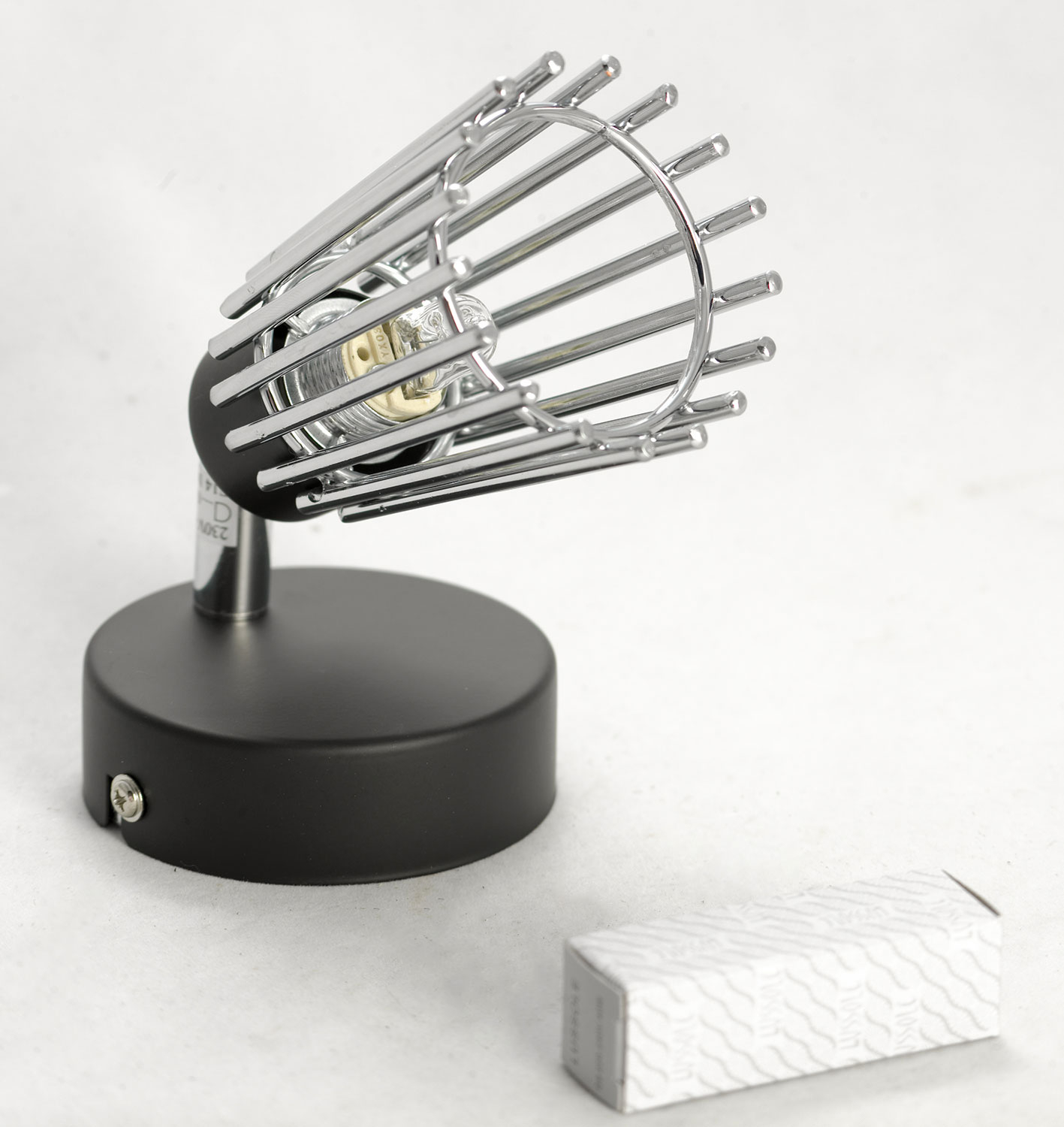 Допускается отличие страны-изготовителя, указанной в характеристиках. Линии производства могут находиться в нескольких государствах. Это не влияет на качество изготовления товара: все заводы данного бренда работают по общим стандартам, а готовые изделия проходят соответствующий контроль.Италия Коллекция Avondale ЦветЦвет арматуры Хром, Черный Цвет Черный Материал арматуры Металл Цвет плафона хром Материал плафона Металл РазмерыВысота (мм) 120 Ширина (мм) 80 Глубина (мм) 130 ЭлектрикаКоличество ламп (шт) 1 Цоколь G9 Лампочки в комплекте Нет в комплекте Мощность лампы (Вт) 40W Дополнительная информацияТехническая оссобеность Поворотный -