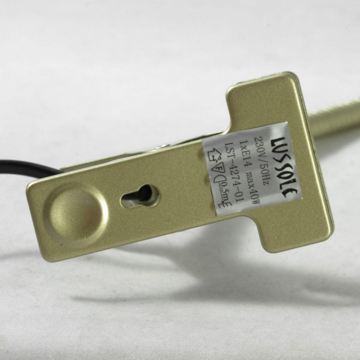 Допускается отличие страны-изготовителя, указанной в характеристиках. Линии производства могут находиться в нескольких государствах. Это не влияет на качество изготовления товара: все заводы данного бренда работают по общим стандартам, а готовые изделия проходят соответствующий контроль.Италия Коллекция Roma ЦветЦвет арматуры Шампань Цвет Шампань Материал арматуры Металл Цвет плафона шампань Материал плафона Металл РазмерыВысота (мм) 530 Диаметр (мм) 100 Ширина (мм) 100 мм ЭлектрикаКоличество ламп (шт) 1 Цоколь E14 Тип лампы Светодиодная, Накаливания, Энергосберегающая (КЛЛ) Лампочки в комплекте Нет в комплекте Мощность лампы (Вт) 40W Общая мощность (Вт) 40 Напряжение (В) 220 Дополнительная информацияСпособ крепления Прищепка Степень защиты (IP) IP20 Тип выключателя Выключатель на шнуре Вес (Кг) 0,61 Техническая оссобеность Регулируемая по наклону, С зажимом -