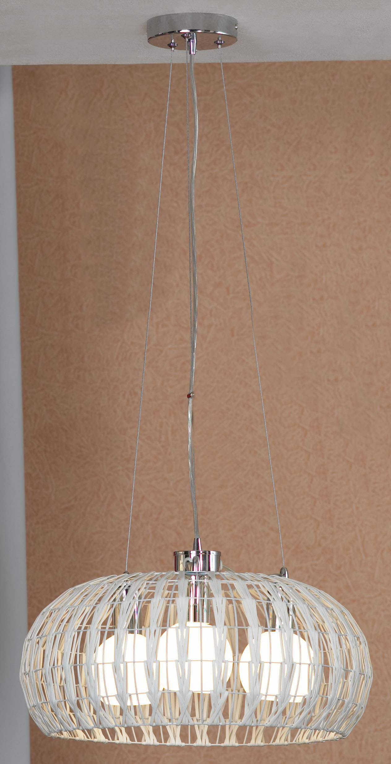 Допускается отличие страны-изготовителя, указанной в характеристиках. Линии производства могут находиться в нескольких государствах. Это не влияет на качество изготовления товара: все заводы данного бренда работают по общим стандартам, а готовые изделия проходят соответствующий контроль.Италия Коллекция Fenigli ЦветЦвет арматуры Хром Цвет Белый Материал арматуры Металл Цвет плафона Белый, хром Материал плафона Металл, Текстиль РазмерыВысота (мм) 1000 Диаметр (мм) 450 Высота минимальная (мм) 500 Возможность регулировки высоты Есть ЭлектрикаКоличество ламп (шт) 3 Цоколь E27 Тип лампы Светодиодная, Накаливания, Энергосберегающая (КЛЛ) Лампочки в комплекте Нет в комплекте Возможность подключение диммера Есть Мощность лампы (Вт) 60W Общая мощность (Вт) 180 Напряжение (В) 220 Дополнительная информацияСтепень защиты (IP) IP20 Тип подвеса На тросах Количество подвесов Одиночный подвес -