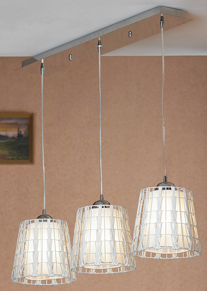 Допускается отличие страны-изготовителя, указанной в характеристиках. Линии производства могут находиться в нескольких государствах. Это не влияет на качество изготовления товара: все заводы данного бренда работают по общим стандартам, а готовые изделия проходят соответствующий контроль.Италия Коллекция Fenigli ЦветЦвет арматуры Хром Цвет Белый Материал арматуры Металл Цвет плафона Белый Материал плафона Металл, Текстиль РазмерыВысота (мм) 1050 Длина (мм) 800 Высота минимальная (мм) 250 Ширина (мм) 190 Возможность регулировки высоты Есть ЭлектрикаКоличество ламп (шт) 3 Цоколь E27 Тип лампы Светодиодная, Накаливания, Энергосберегающая (КЛЛ) Лампочки в комплекте Нет в комплекте Возможность подключение диммера Есть Мощность лампы (Вт) 60W Общая мощность (Вт) 180 Напряжение (В) 220 Дополнительная информацияСтепень защиты (IP) IP20 Тип подвеса На тросах Количество подвесов Много подвесных элементов -