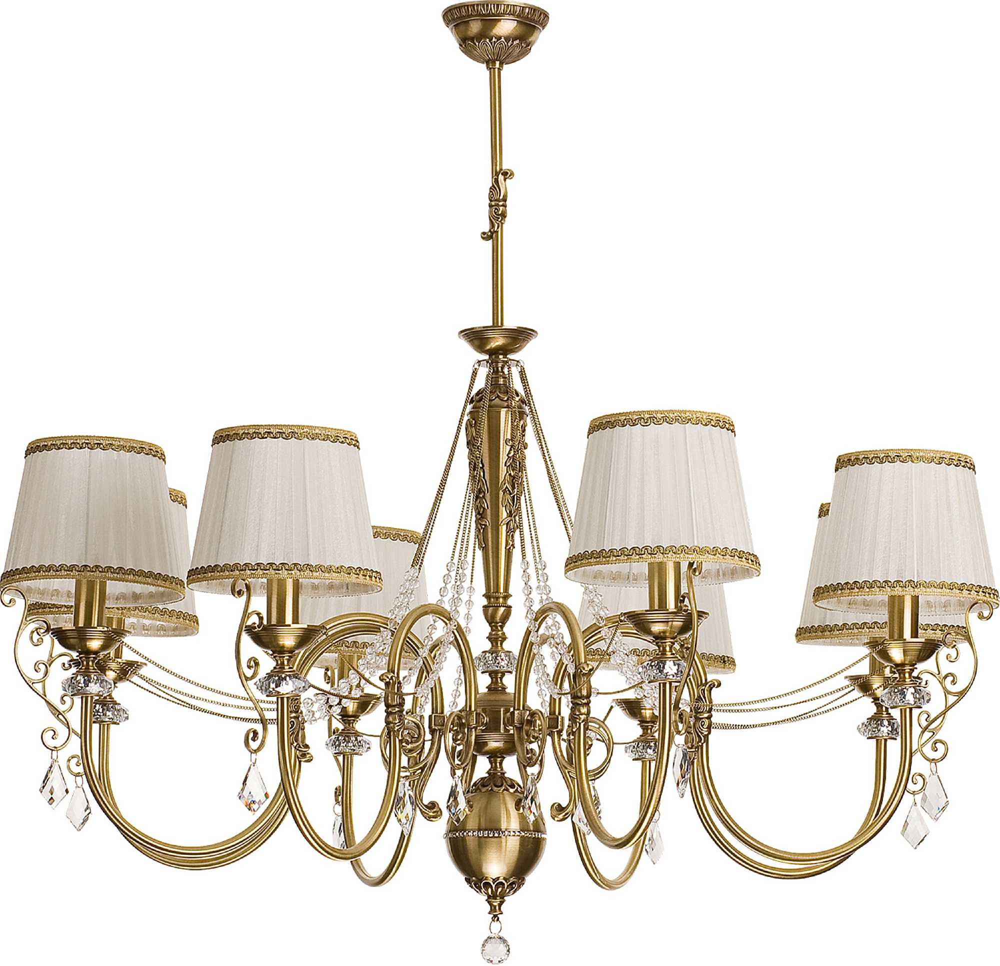 Восьмилучевая версия люстры из коллекции. LUC-ZW-8 (P/A) обладает масштабом, подходящим для просторных комнат, сохраняя при этом утончённость деталей. Подходит для симметричных планировок с акцентом на центральное освещение.
