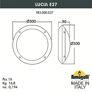 Допускается отличие страны-изготовителя, указанной в характеристиках. Линии производства могут находиться в нескольких государствах. Это не влияет на качество изготовления товара: все заводы данного бренда работают по общим стандартам, а готовые изделия проходят соответствующий контроль.Италия Коллекция Lucia ЦветЦвет арматуры Черный Цвет Черный Материал арматуры Сверхпрочный полимер RESIN Цвет плафона прозрачный, матовый Материал плафона ПММА (ПолиМетилМетАкрилат) РазмерыВысота (мм) 300 Ширина (мм) 300 Глубина (мм) 90 ЭлектрикаКоличество ламп (шт) 1 Цоколь E27 Тип лампы Светодиодная Лампочки в комплекте Нет в комплекте Напряжение (В) 220 Дополнительная информацияСтепень защиты (IP) IP66 Вес (Кг) 1 -