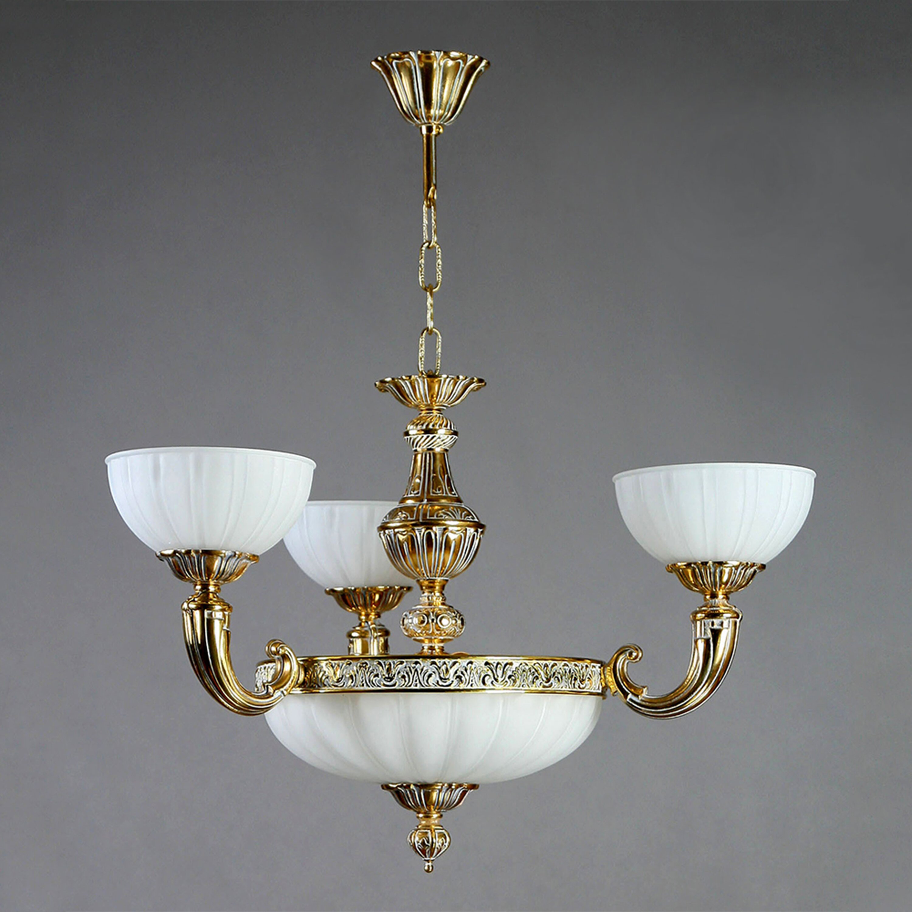 Допускается отличие страны-изготовителя, указанной в характеристиках. Линии производства могут находиться в нескольких государствах. Это не влияет на качество изготовления товара: все заводы данного бренда работают по общим стандартам, а готовые изделия проходят соответствующий контроль.Испания Коллекция Lugo ЦветЦвет арматуры белая патина Цвет Золото Материал арматуры Латунь Материал плафона Стекло РазмерыВысота (мм) 420 Длина (мм) 170 Диаметр (мм) 660 Ширина (мм) 370 ЭлектрикаКоличество ламп (шт) 6 Цоколь E27 Лампочки в комплекте Лампы в комплекте Мощность лампы (Вт) 4 Напряжение (В) 220 Световой поток 1920 Цветовая температура теплый (2700k), Тёплый свет (2700K) Дополнительная информацияТип подвеса На цепи -