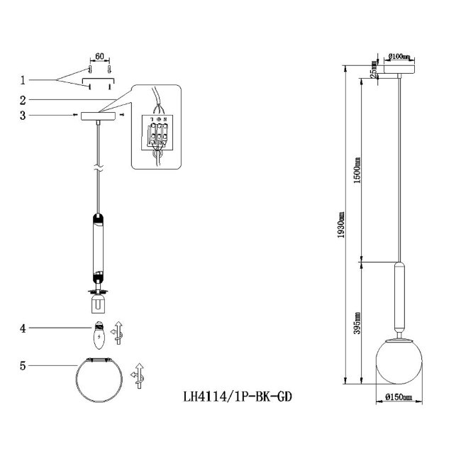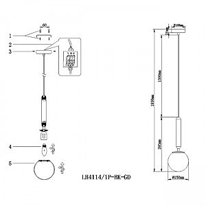 Светильник подвесной Luino LH4114/1P-BK-GD