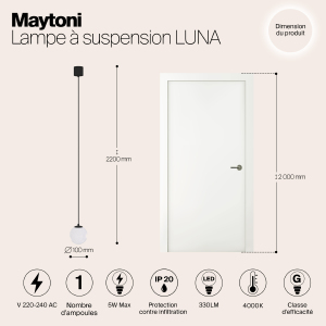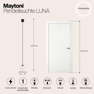 Допускается отличие страны-изготовителя, указанной в характеристиках. Линии производства могут находиться в нескольких государствах. Это не влияет на качество изготовления товара: все заводы данного бренда работают по общим стандартам, а готовые изделия проходят соответствующий контроль.Германия Коллекция Luna ЦветЦвет арматуры Черно-Белый Цвет Черный Материал арматуры Пластик, Алюминий Форма плафона Шар РазмерыВысота (мм) 2200 Диаметр (мм) 100 Высота минимальная (мм) 200 Диаметр основания 52 ЭлектрикаКоличество ламп (шт) 1 Цоколь LED Тип лампы Светодиодная Мощность лампы (Вт) 5 Напряжение (В) 220 Световой поток 330 Цветовая температура 4000 Дополнительная информацияСтепень защиты (IP) IP20 Вес (Кг) 0,38 Техническая оссобеность Полностью светодиодная Тип подвеса На тросах Количество подвесов Одиночный подвес -