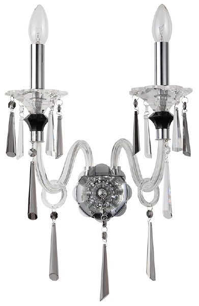 Светильник настенный из коллекции Lussi выполнен из металла, гальванизированного в цвет хрома, и декорирован прозрачным и черным хрусталем высшей категории. Стеклянные рожки выдуваются вручную. Премиальное качество и неповторимыи? дизаи?н светильников идеально подои?дут как в классические, так и современные интерьеры.