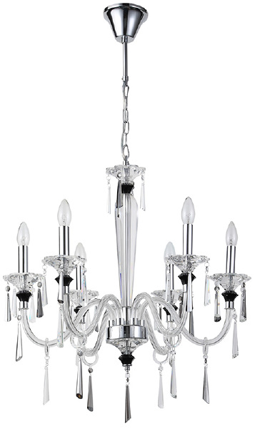 Люстра подвесная из коллекции Lussi выполнена из металла, гальванизированного в цвет хрома, и декорирована прозрачным и черным хрусталем высшей категории. Стеклянные рожки выдуваются вручную. Премиальное качество и неповторимыи? дизаи?н светильников идеально подои?дут как в классические, так и современные интерьеры.