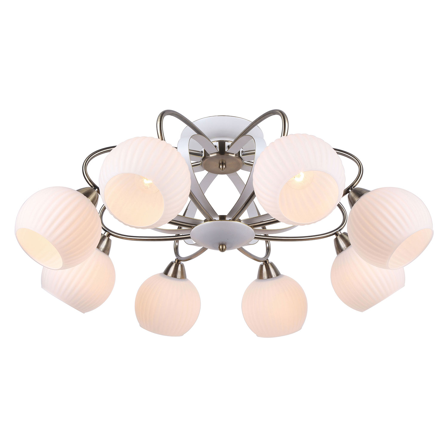 Допускается отличие страны-изготовителя, указанной в характеристиках. Линии производства могут находиться в нескольких государствах. Это не влияет на качество изготовления товара: все заводы данного бренда работают по общим стандартам, а готовые изделия проходят соответствующий контроль.Италия Коллекция Fayetteville ЦветЦвет арматуры Белый, Бронза Цвет Белый Материал арматуры Металл Цвет плафона Белый Материал плафона Стекло РазмерыВысота (мм) 320 Диаметр (мм) 740 Ширина (мм) 740 ЭлектрикаКоличество ламп (шт) 8 Цоколь E27 Мощность лампы (Вт) 60W Напряжение (В) 220 -