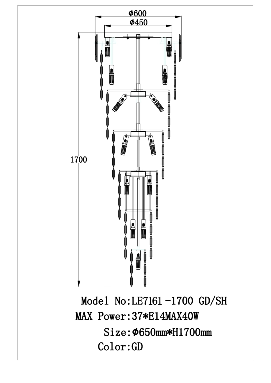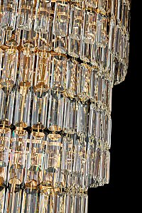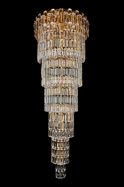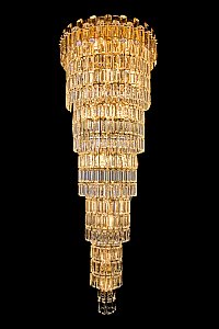 Допускается отличие страны-изготовителя, указанной в характеристиках. Линии производства могут находиться в нескольких государствах. Это не влияет на качество изготовления товара: все заводы данного бренда работают по общим стандартам, а готовые изделия проходят соответствующий контроль.Россия Коллекция Jacqueline ЦветЦвет арматуры Золото Цвет Золото Материал арматуры Металл гальванизированный Цвет плафона шампань Материал плафона Хрусталь РазмерыВысота (мм) 1700 Длина (мм) 61 Диаметр (мм) 600 ЭлектрикаКоличество ламп (шт) 37 Цоколь E14 Дополнительная информацияВес (Кг) 5; 9; 5 12; 5 -
