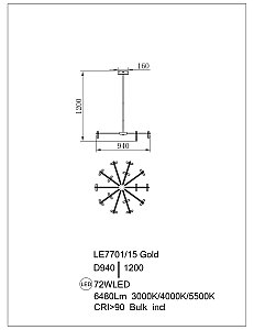 Допускается отличие страны-изготовителя, указанной в характеристиках. Линии производства могут находиться в нескольких государствах. Это не влияет на качество изготовления товара: все заводы данного бренда работают по общим стандартам, а готовые изделия проходят соответствующий контроль.Россия Коллекция Theona ЦветЦвет арматуры Серый Цвет Золото Материал арматуры Металл гальванизированный Цвет плафона золото Материал плафона Металл РазмерыВысота (мм) 1200 Длина (мм) 100 Диаметр (мм) 940 ЭлектрикаЦоколь LED Мощность лампы (Вт) 72 Световой поток 6480 Цветовая температура нейтральный (4000k) Дополнительная информацияВес (Кг) 10.5 -