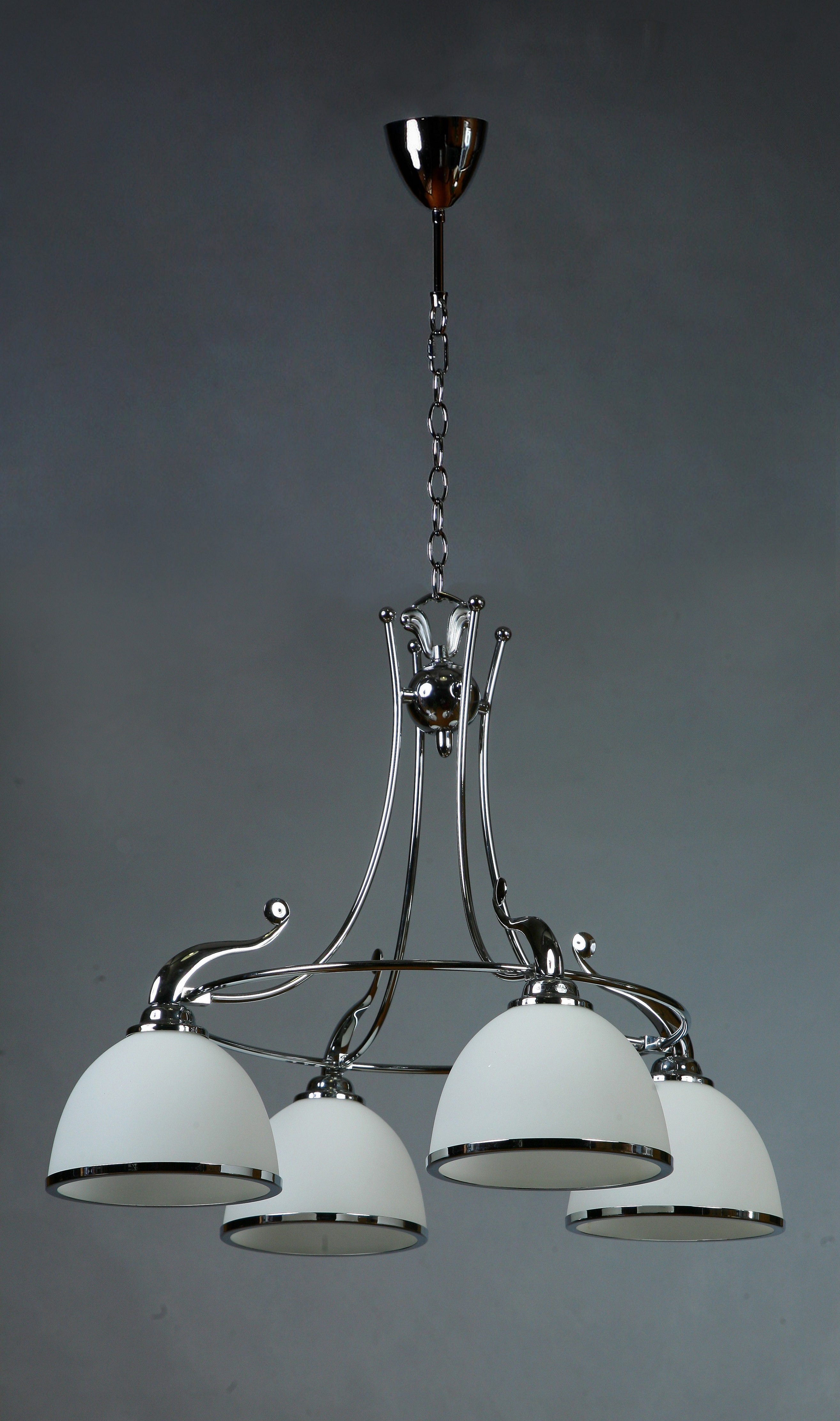Допускается отличие страны-изготовителя, указанной в характеристиках. Линии производства могут находиться в нескольких государствах. Это не влияет на качество изготовления товара: все заводы данного бренда работают по общим стандартам, а готовые изделия проходят соответствующий контроль.Испания Коллекция 2401 ЦветЦвет арматуры Хром Цвет Хром Материал арматуры Металл Цвет плафона Белый Материал плафона Стекло РазмерыВысота (мм) 950 Диаметр (мм) 620 Высота минимальная (мм) 550 Ширина (мм) 620 ЭлектрикаКоличество ламп (шт) 4 Цоколь E27 Лампочки в комплекте Нет в комплекте Мощность лампы (Вт) 40W Напряжение (В) 220 Дополнительная информацияСтепень защиты (IP) IP20 Тип подвеса На цепи -
