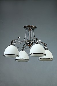 Допускается отличие страны-изготовителя, указанной в характеристиках. Линии производства могут находиться в нескольких государствах. Это не влияет на качество изготовления товара: все заводы данного бренда работают по общим стандартам, а готовые изделия проходят соответствующий контроль.Испания Коллекция 2401 ЦветЦвет арматуры Хром Цвет Хром Материал арматуры Металл Цвет плафона Белый Материал плафона Стекло РазмерыВысота (мм) 480 Диаметр (мм) 620 Ширина (мм) 620 ЭлектрикаКоличество ламп (шт) 4 Цоколь E27 Лампочки в комплекте Нет в комплекте Мощность лампы (Вт) 40W Напряжение (В) 220 Дополнительная информацияСтепень защиты (IP) IP20 -