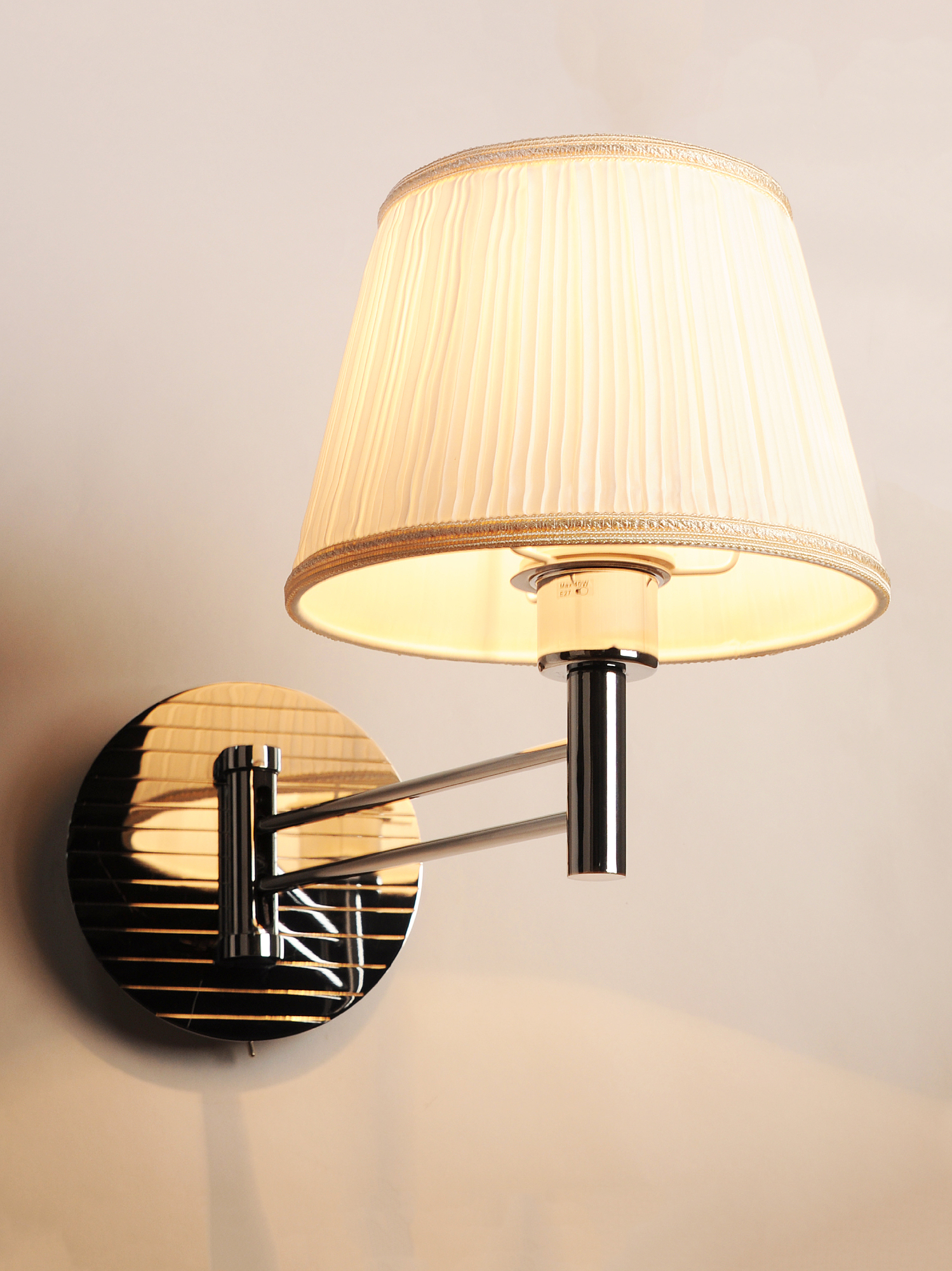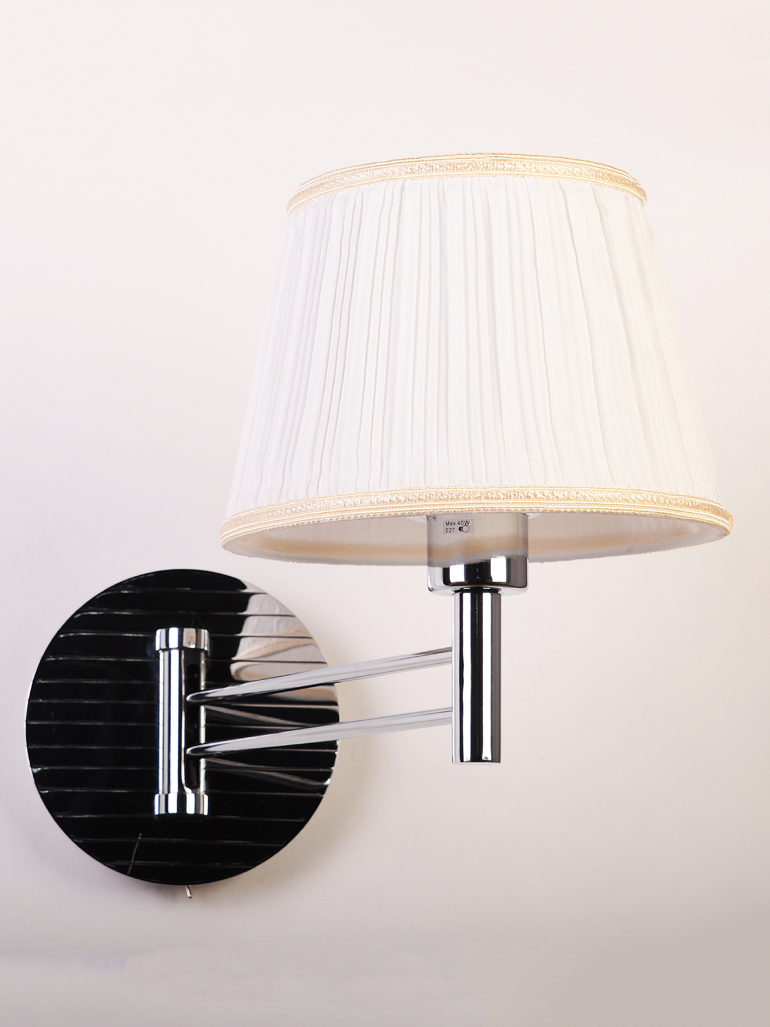 Допускается отличие страны-изготовителя, указанной в характеристиках. Линии производства могут находиться в нескольких государствах. Это не влияет на качество изготовления товара: все заводы данного бренда работают по общим стандартам, а готовые изделия проходят соответствующий контроль.Германия ЦветЦвет арматуры Хром Цвет Белый Материал арматуры Металл Цвет плафона Белый Материал плафона Текстиль РазмерыВысота (мм) 350 Длина (мм) 280 Ширина (мм) 180 ЭлектрикаКоличество ламп (шт) 1 Цоколь E27 Тип лампы Светодиодная, Накаливания Мощность лампы (Вт) 40 Напряжение (В) 220 Площадь освещения 3 Дополнительная информацияСпособ крепления Планка Степень защиты (IP) IP20 Тип выключателя Выключатель на корпусе Место установки на стену Техническая оссобеность Регулируемая по наклону -