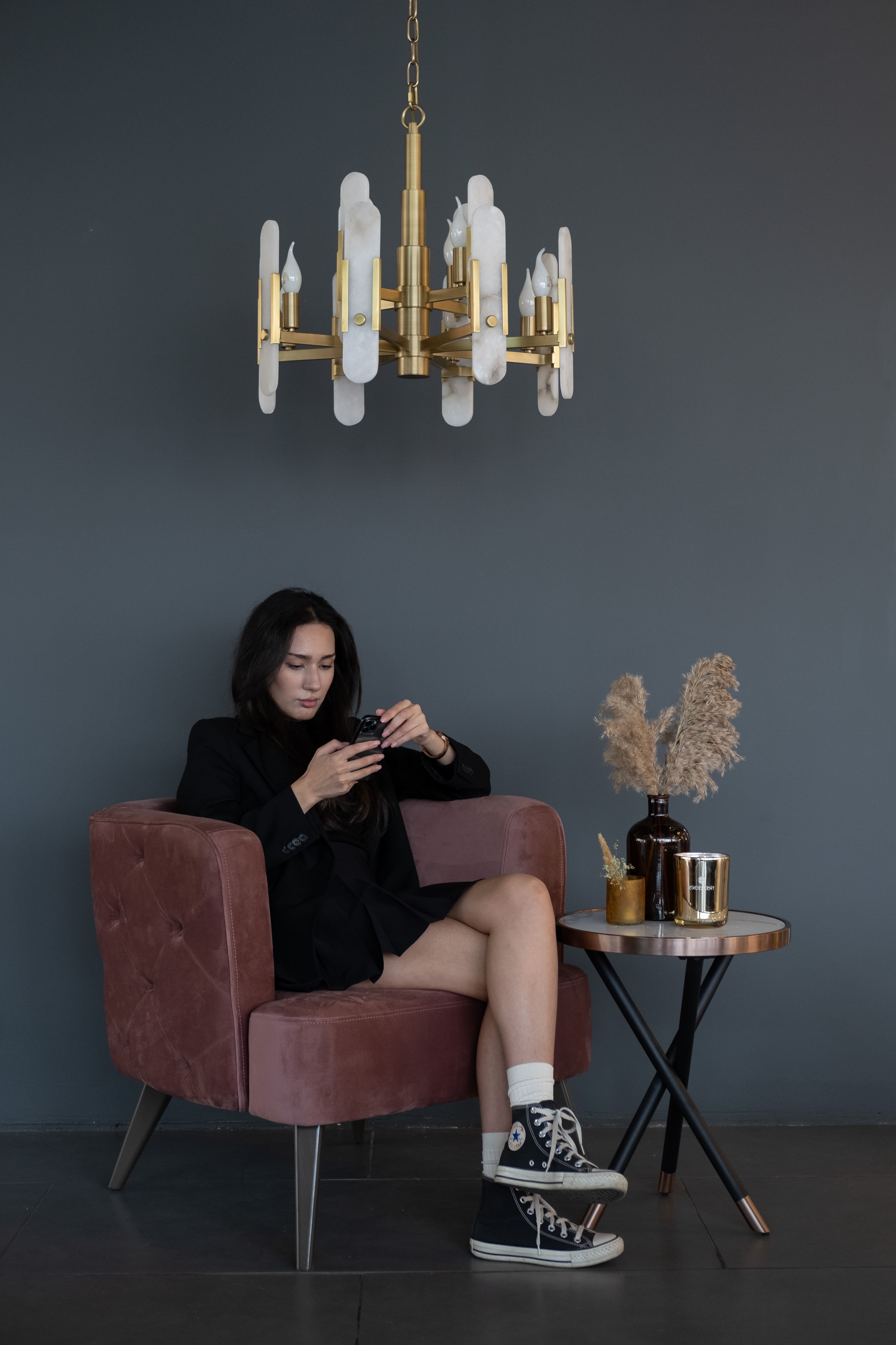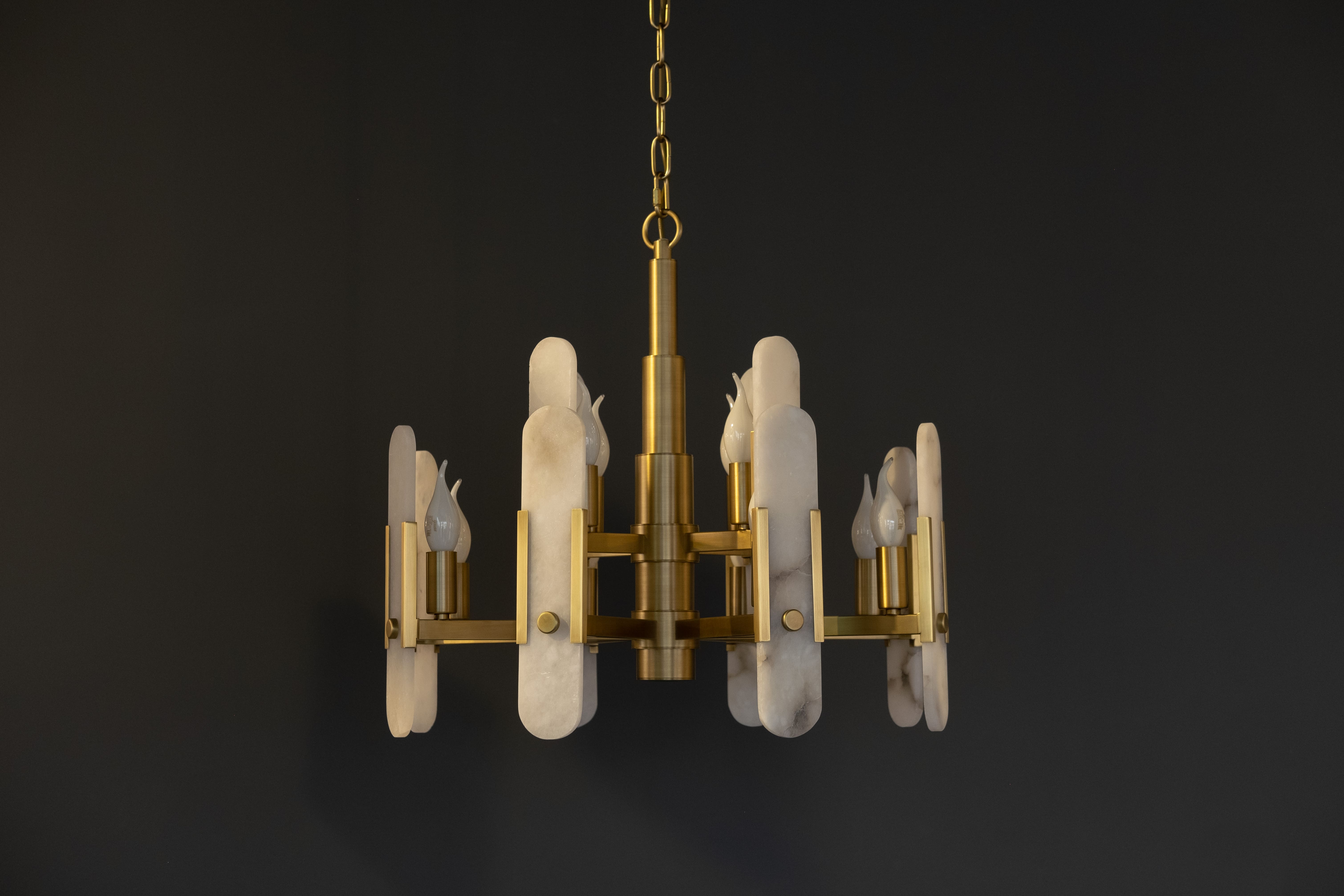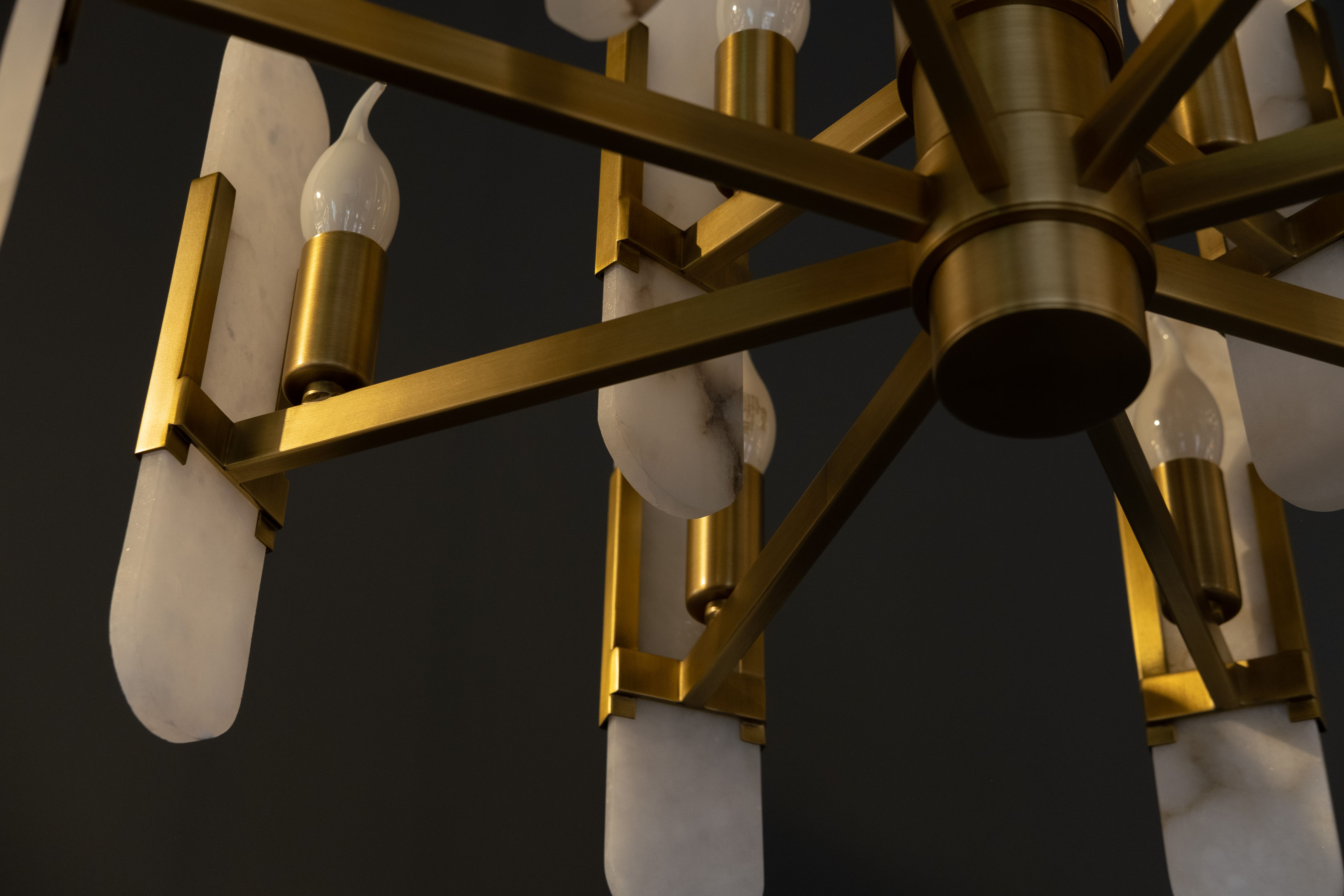 Яркая золотая люстра на 12 рожков с декоративными мраморными элементами. Эта модель станет звездой в вашем пространстве — мимо нее невозможно пройти без восхищения. Люстра подойдет как в современные интерьеры, так и в классические. Идеальный вариант для вашей гостиной, спальни или кухни. Цепь регулируется по высоте до 2х метров.