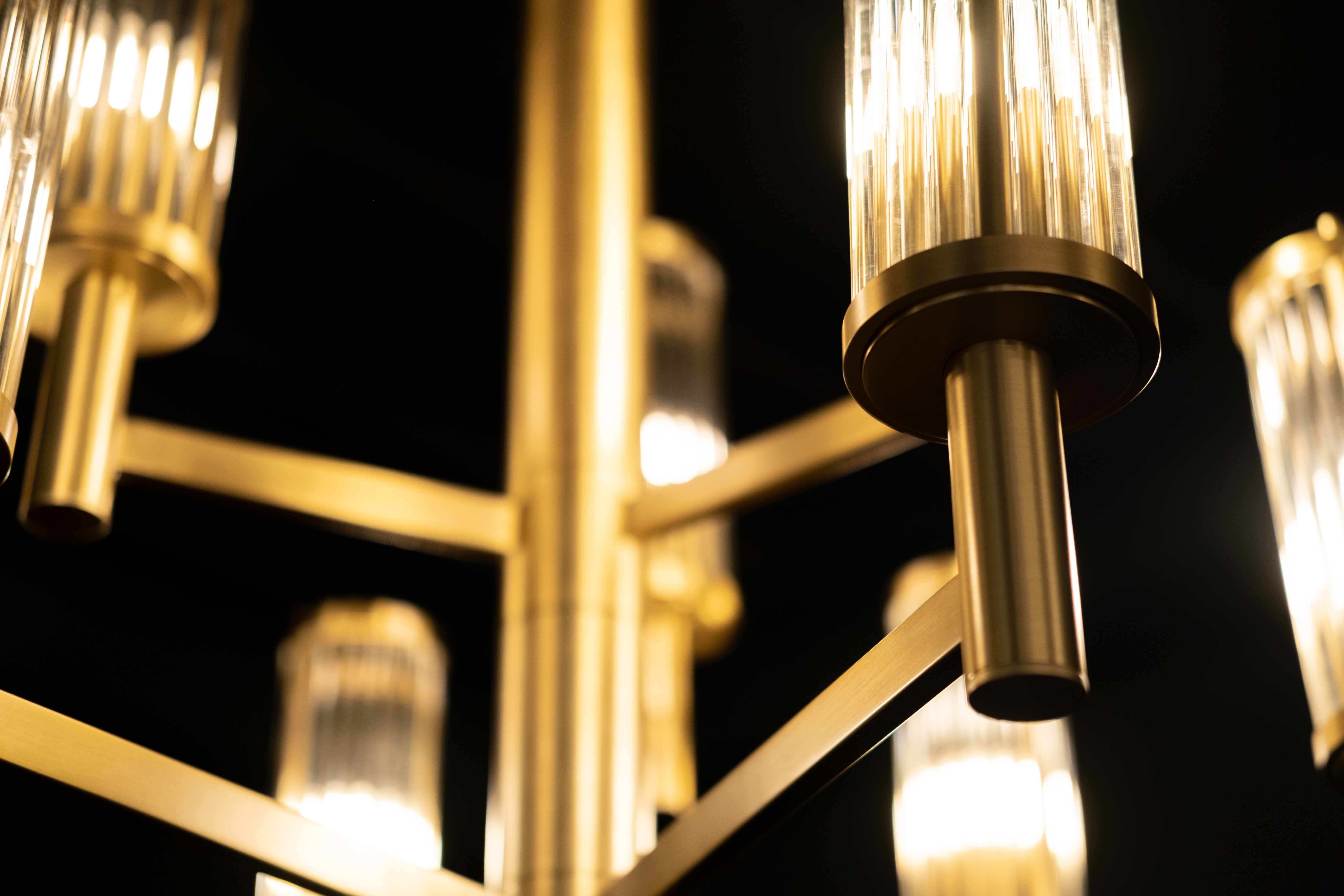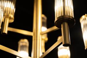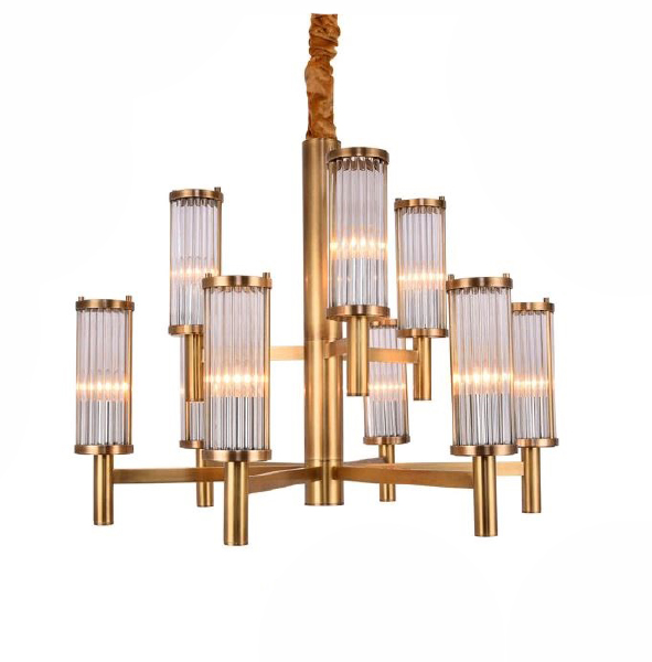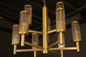 Люстра в латуни со стеклянными трубочками.