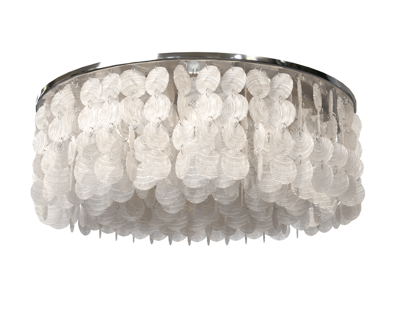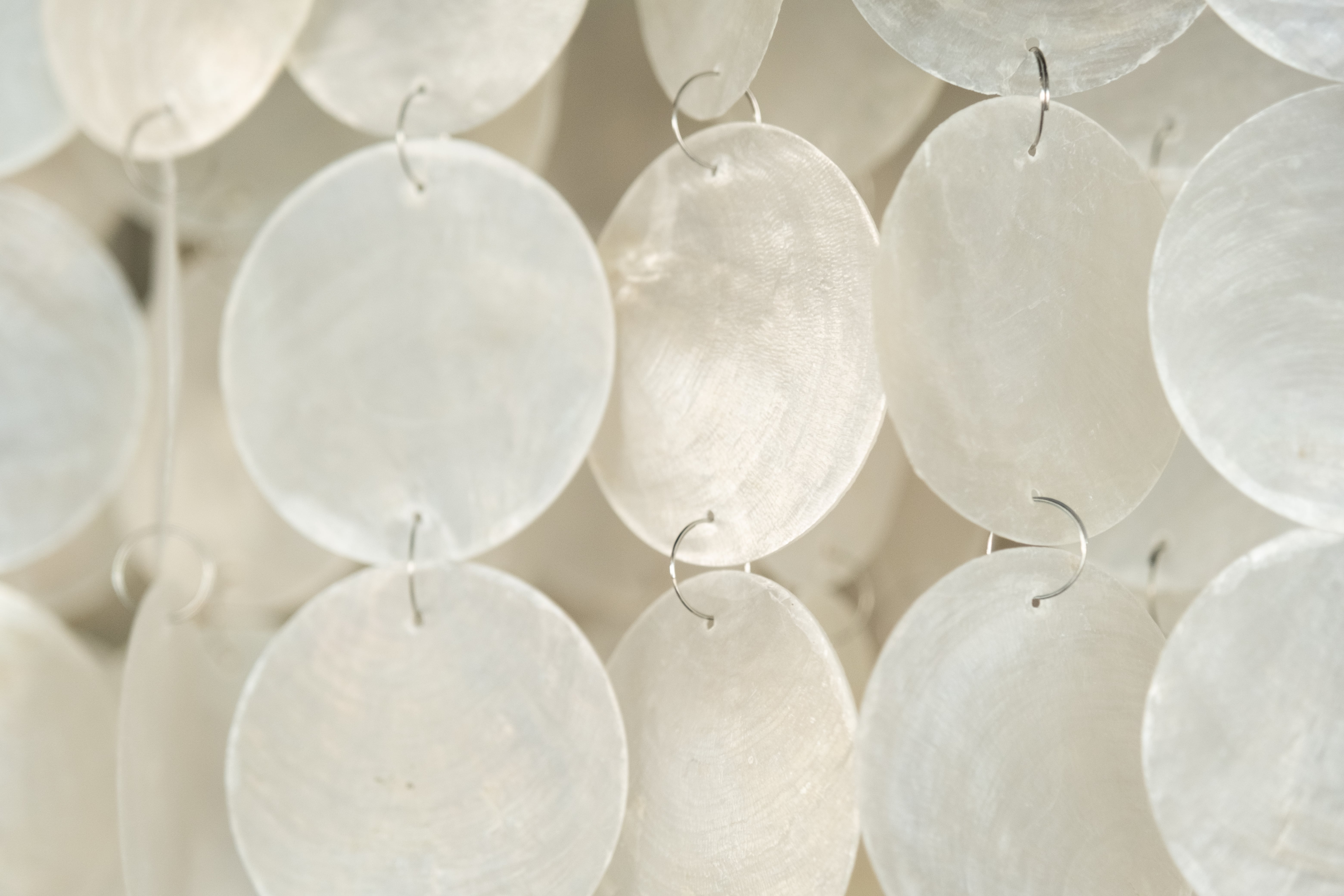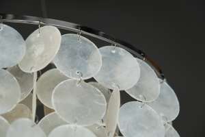 Невероятно нежная люстра Madison, состоит из переливающихся белым перламутром лепестков из ракушек, которые спускаются каскадом вниз. Даже незначительный шлейф воздуха образует шелест лепестков, который окунет Вас в атмосферу и воспоминания о проведенном приятном отдыхе на море.