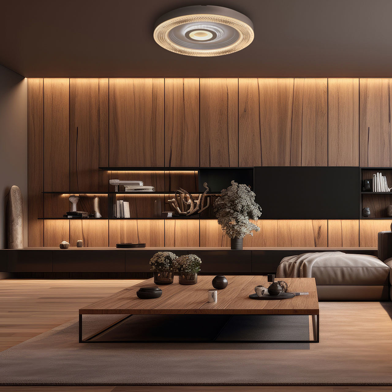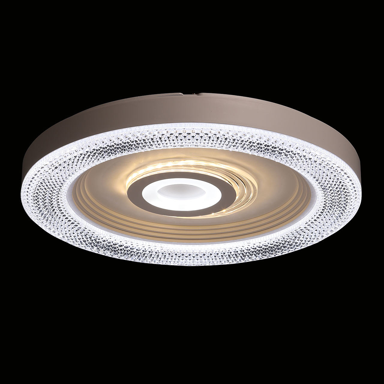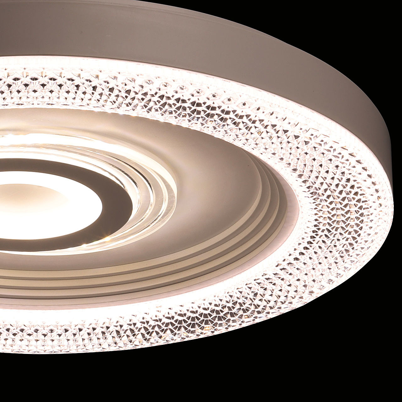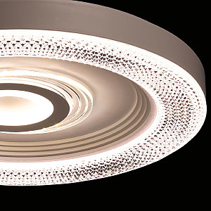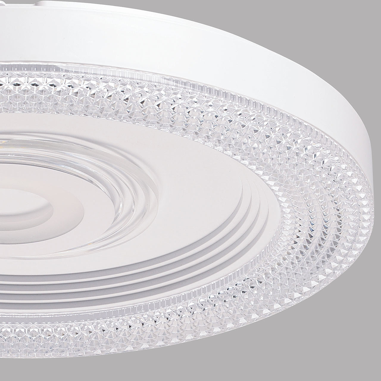 Многорежимность с изменением цветовой температуры и яркости света является элементом светодизайна. Качественные светодиоды обеспечивают яркое освещение и долгий срок службы. Наличие ПДУ позволяет управлять режимами освещения. Плавный диммер создает требуемое настроение в помещении. Декор из прозрачного акрила создает красивую игру света. Компактный светильник для стандартной высоты потолка.