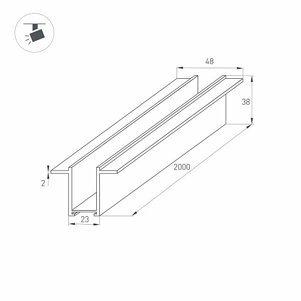 Встраиваемый магнитный трек с фланцем MAG-TRACK-2538-F-2000 (BK) длиной 2000 мм. Напряжение питания 24 В. Две заглушки в комплекте. Установка в монтажное отверстие (Д×Ш×В) 2003×48×38 мм.