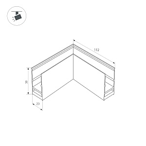 Угловой прямой коннектор для трека MAG-TRACK-2538. Материал алюминий, цвет черный. Размеры 112x112x23x38 мм. DC24V.