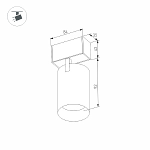 Светильник поворотный для магнитных треков шириной 45 мм, 7 Вт. Цвет свечения ДНЕВНОЙ 4000 K, световой поток 517лм, угол 24°, CRI>90. Корпус прямоугольный, металл, цвет черный, IP20.Размеры LxWxH 84x35x135 мм. Входное напряжение DC24 V, мощность 7 Вт. Драйвер DС24 V/AC230 V поставляется отдельно. Диммируется только с 026407(1), 027633.