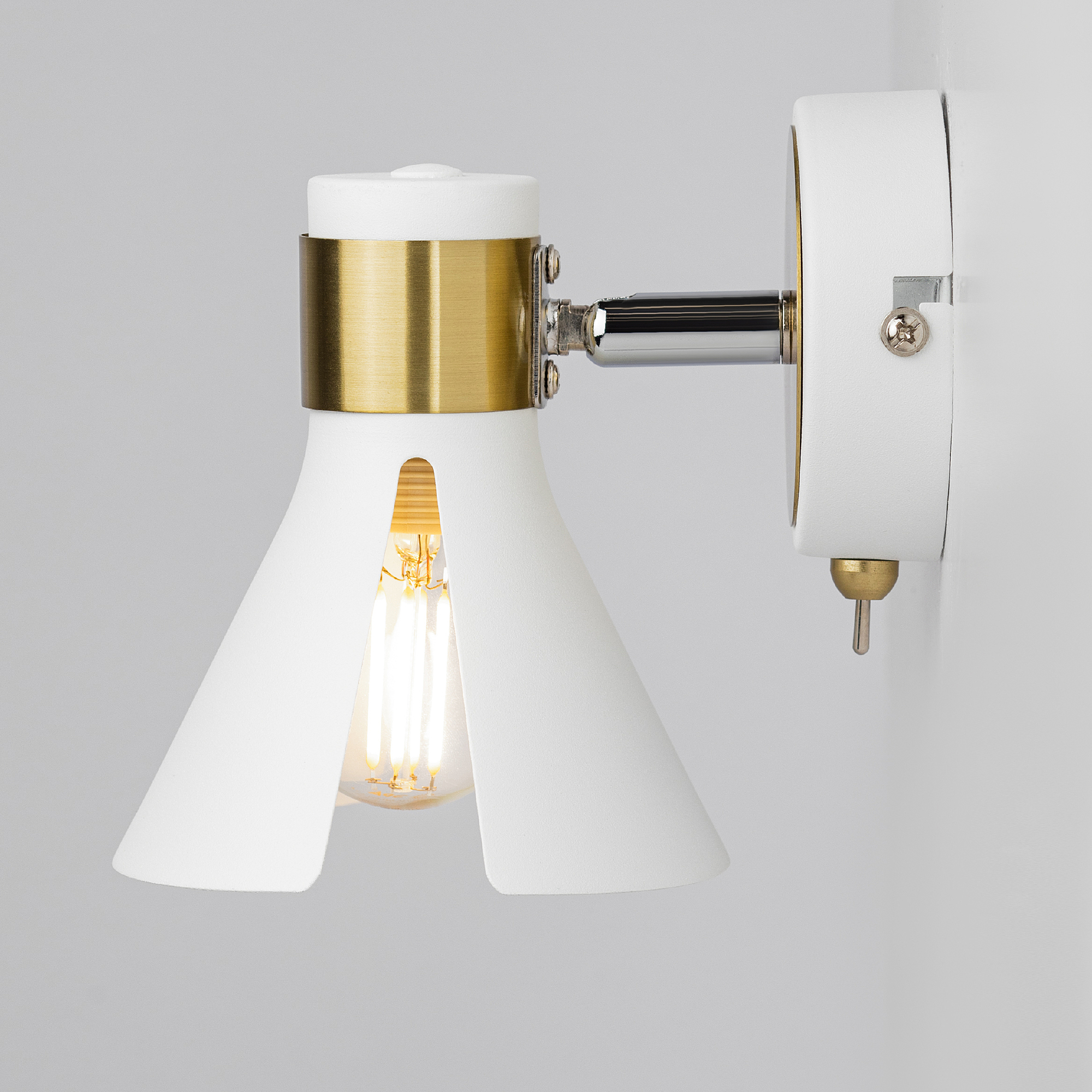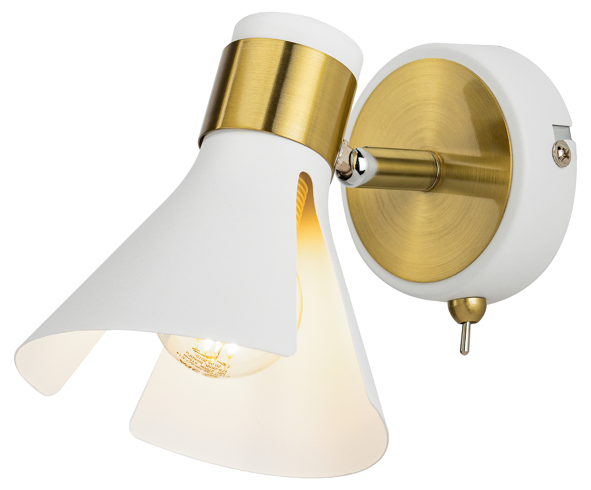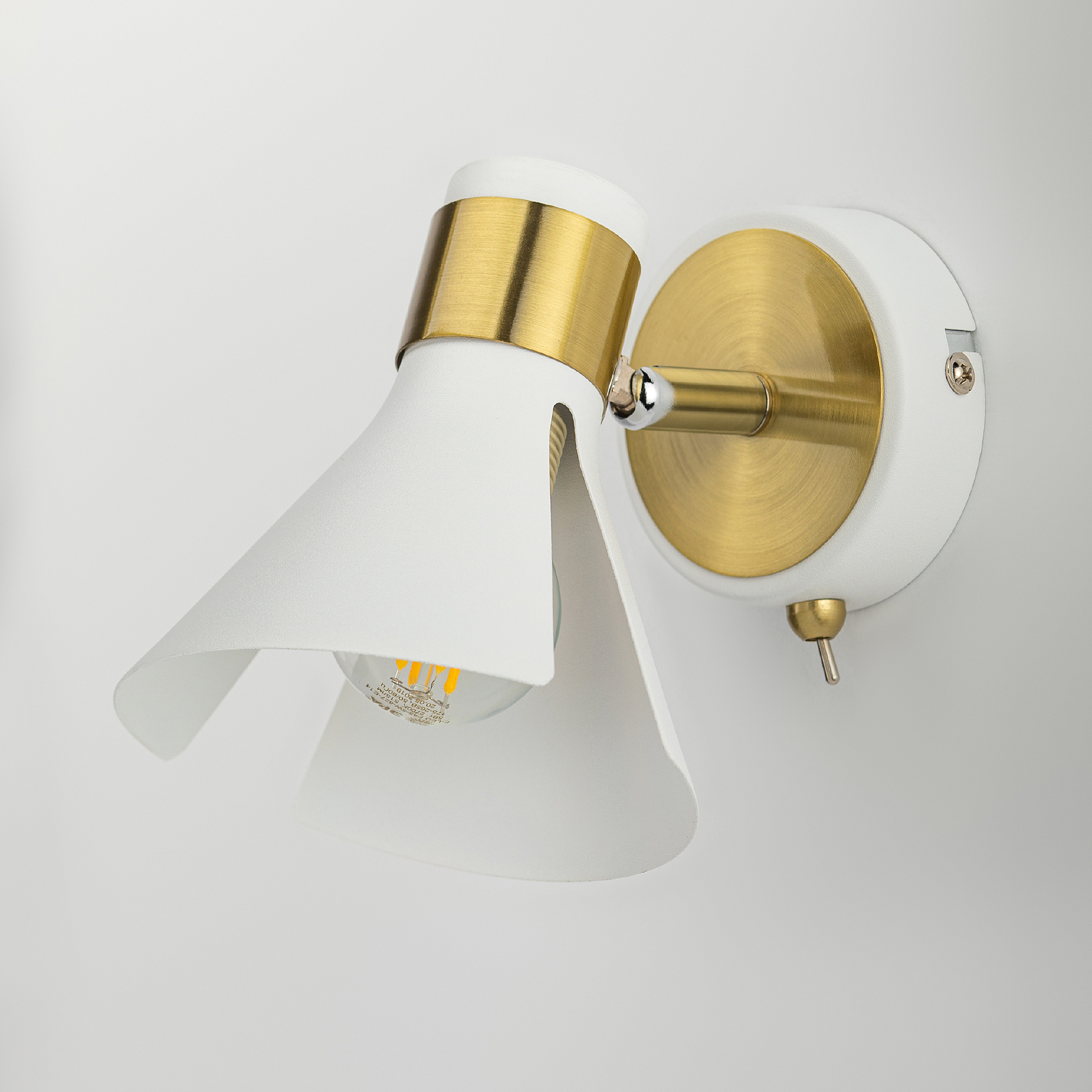 Дизайнерский настенный светильник с выключателем и поворотным механизмом. Бра настенное Rivoli Maira даёт возможность регулировки направления света. Светильник-бра под 1 лампу Е14 40 Вт освещает площадь до 3 м2, идеален в качестве дополнительной или акцентной подсветки. Поворотная конструкция данного металлического бра позволяет применять его в качестве спота. Коллекция Maira от итальянского бренда Rivoli – это светильник настенный поворотный (арт. 7054-701) и потолочная люстра с 5 плафонами (арт. 7054-735). Прочные люстры и светильники из металла имеют современный элегантный дизайн в сочетании белого цвета и цвета античное золото. Применено гальваническое окрашивание, надолго сохраняющее целостность и оттенок покрытия.