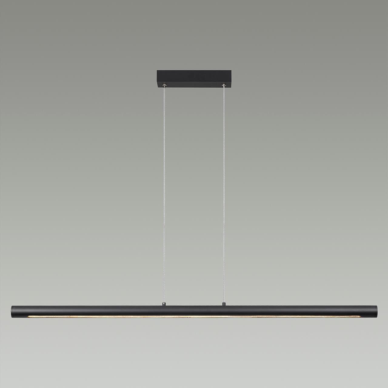 Минималистичный горизонтальный черный подвес Mali отлично подсветит остров или рабочую зону, создаст комфортный световой поток благодаря светофильтру Honey comb, расположенному внизу плафона.