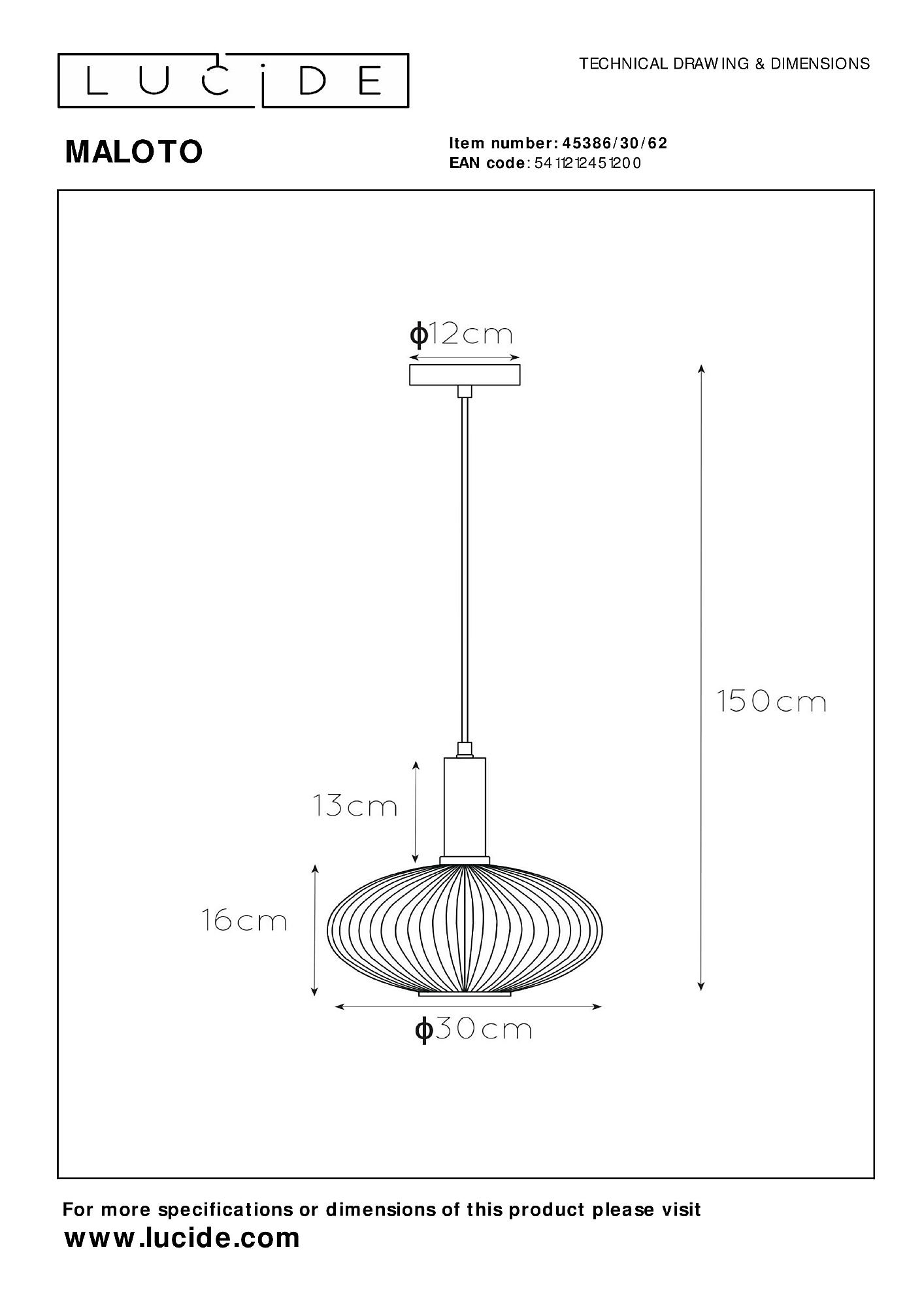 Допускается отличие страны-изготовителя, указанной в характеристиках. Линии производства могут находиться в нескольких государствах. Это не влияет на качество изготовления товара: все заводы данного бренда работают по общим стандартам, а готовые изделия проходят соответствующий контроль.Бельгия Коллекция Maloto ЦветЦвет арматуры Золото Цвет Янтарный Материал арматуры Металл Цвет плафона Янтарь Материал плафона Стекло РазмерыВысота (мм) 1500 Длина (мм) 300 Диаметр (мм) 300 Высота минимальная (мм) 500 Ширина (мм) 300 ЭлектрикаКоличество ламп (шт) 1 Цоколь E27 Лампочки в комплекте Нет в комплекте Мощность лампы (Вт) 40 Напряжение (В) 220 Дополнительная информацияСтепень защиты (IP) IP20 Диммирование Да Тип подвеса На тросах Количество подвесов Одиночный подвес -