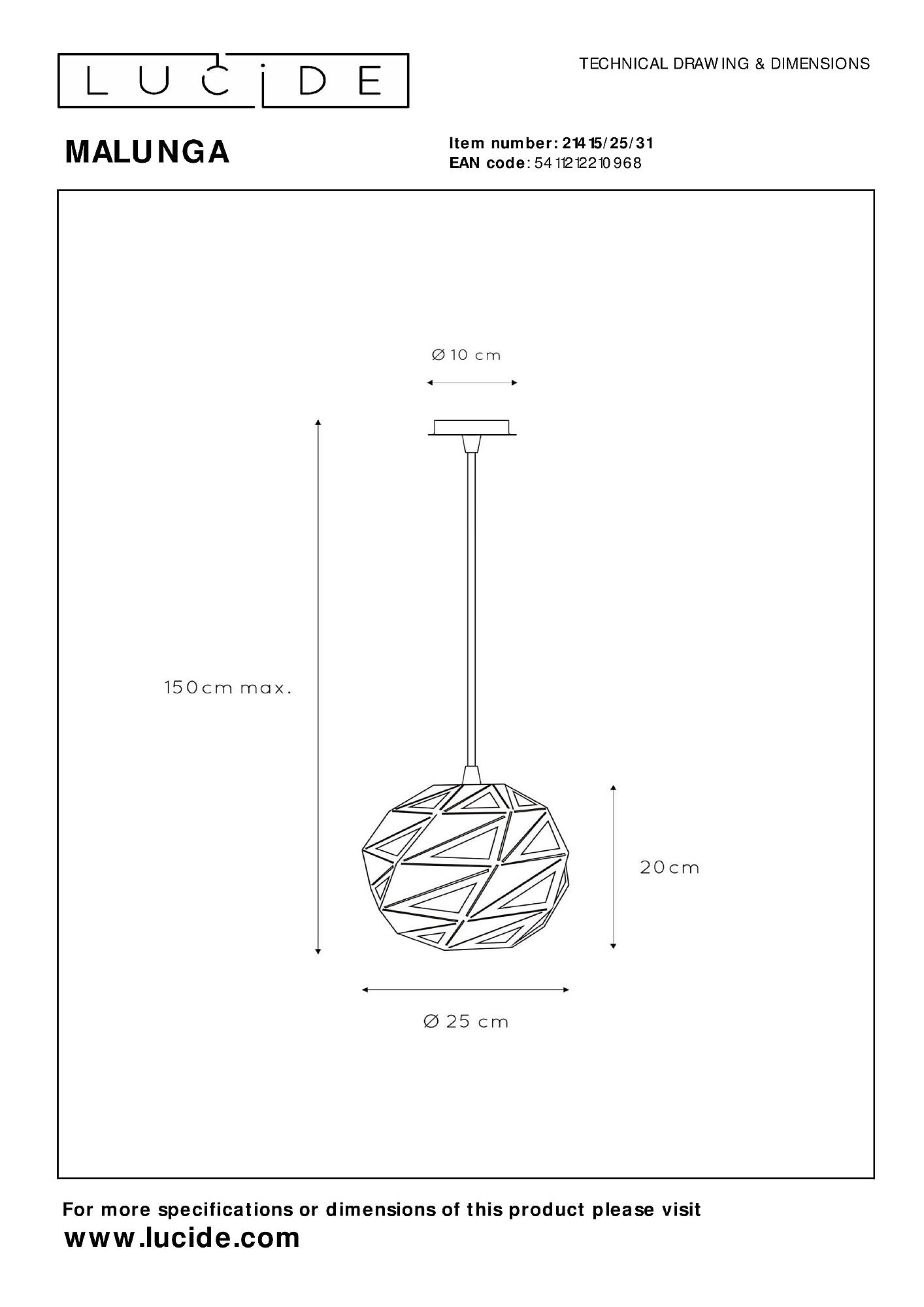 Допускается отличие страны-изготовителя, указанной в характеристиках. Линии производства могут находиться в нескольких государствах. Это не влияет на качество изготовления товара: все заводы данного бренда работают по общим стандартам, а готовые изделия проходят соответствующий контроль.Бельгия Коллекция Malunga ЦветЦвет арматуры Белый Цвет Белый Материал арматуры Металл РазмерыВысота (мм) 1500 Длина (мм) 250 Диаметр (мм) 250 Высота минимальная (мм) 300 Ширина (мм) 250 ЭлектрикаКоличество ламп (шт) 1 Цоколь E27 Лампочки в комплекте Нет в комплекте Мощность лампы (Вт) 60 Напряжение (В) 220 Дополнительная информацияСтепень защиты (IP) IP20 Диммирование Да Тип подвеса На тросах Количество подвесов Одиночный подвес -