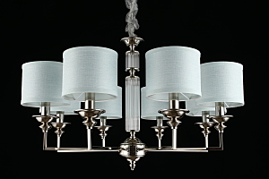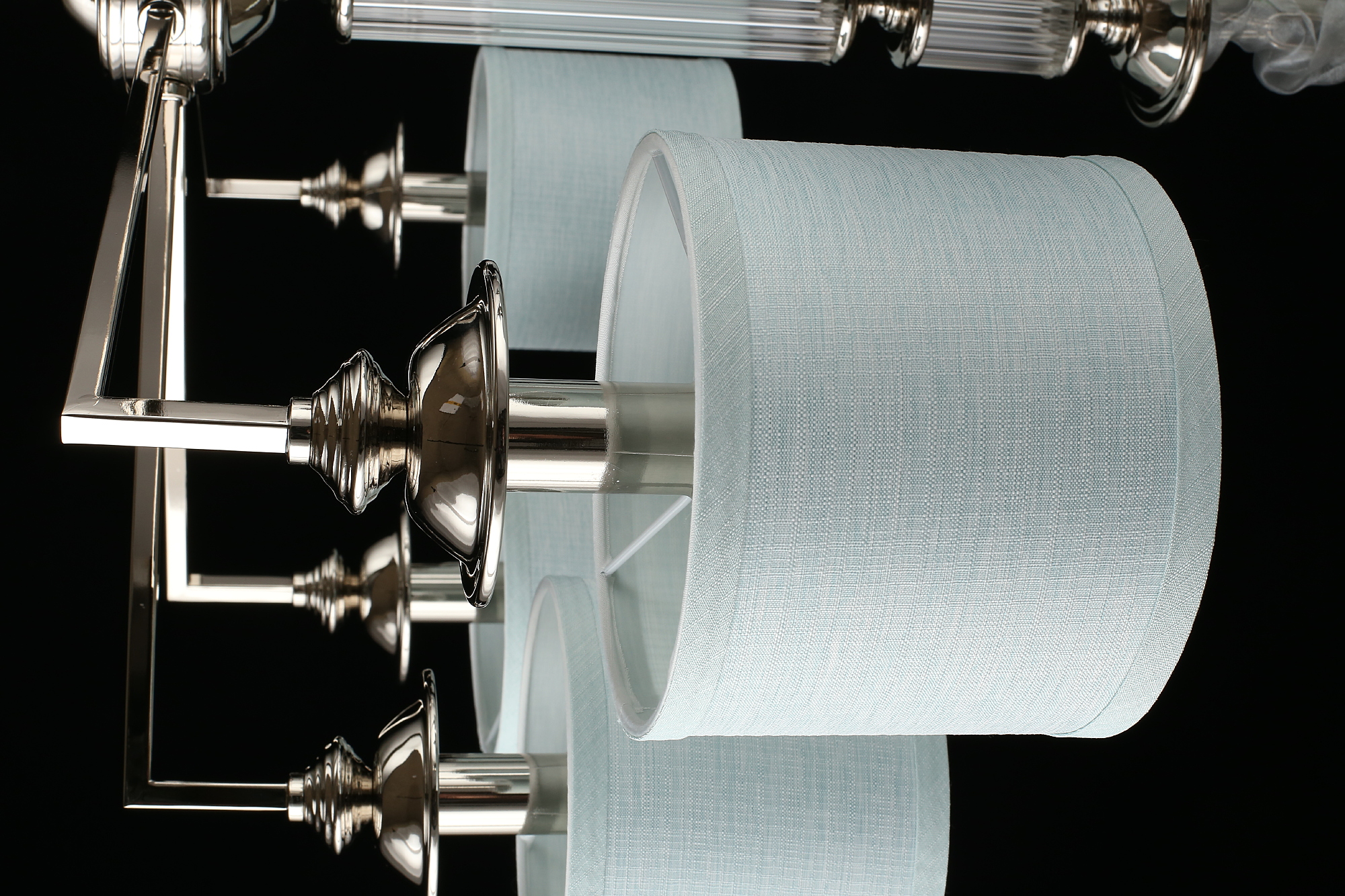 Допускается отличие страны-изготовителя, указанной в характеристиках. Линии производства могут находиться в нескольких государствах. Это не влияет на качество изготовления товара: все заводы данного бренда работают по общим стандартам, а готовые изделия проходят соответствующий контроль.Польша Коллекция Malwa ЦветЦвет арматуры Хром Цвет Хром Материал арматуры Металл Цвет декора прозрачный Цвет плафона голубой Материал декора Хрусталь Материал плафона Ткань РазмерыВысота (мм) 1400 Диаметр (мм) 800 Высота минимальная (мм) 700 Ширина (мм) 800 ЭлектрикаКоличество ламп (шт) 8 Цоколь E14 Лампочки в комплекте Нет в комплекте Мощность лампы (Вт) 40 Общая мощность (Вт) 320 Световой поток 3360 Дополнительная информацияСпособ крепления Планка Степень защиты (IP) IP20 Вес (Кг) 4.5 Тип подвеса На цепи -